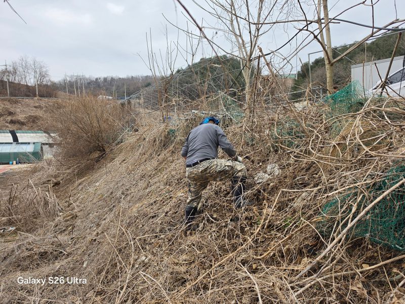 윗밭 경사면 제초메트 덥기 작업