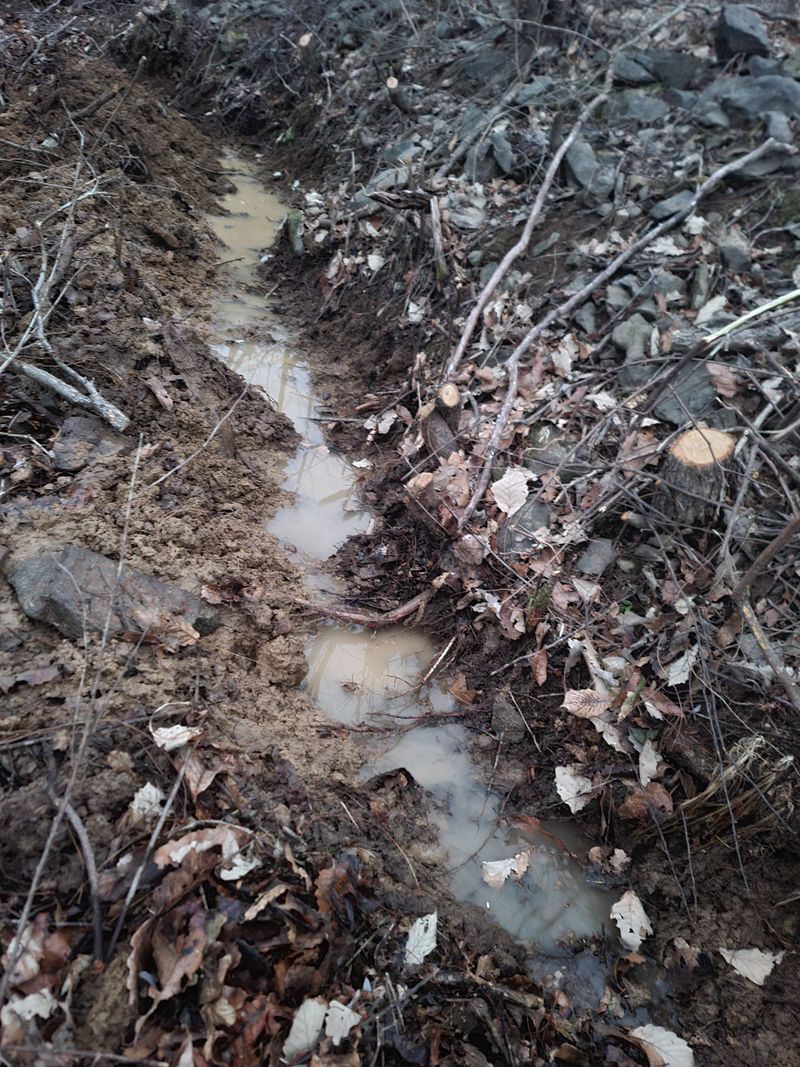 많은 비로 임지내 발생한 물줄기들이 도로나 타인의 경작지에 피해가 없도록 손봄.