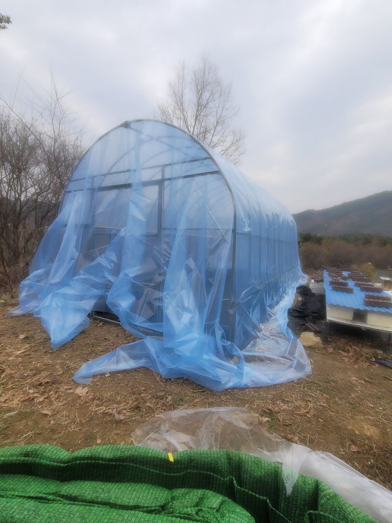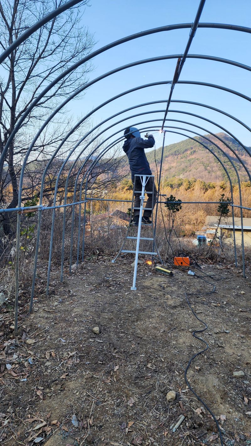 창고형 비닐하우스 만들기. 아내와 함께 만들었다.