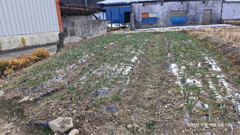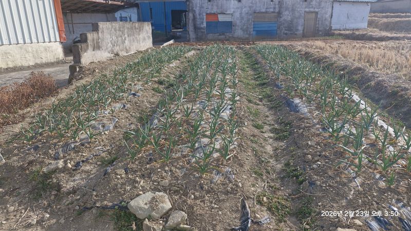 * 논 상태 확인 * 봄동 일부 수확 * 마늘.양파 잡초제거