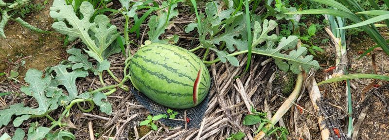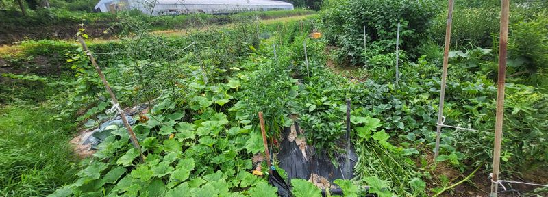 농업용 고추는 비가림으로 하고있다. 한창 붉은고추가 만연하다. 노지에 반찬보조용으로 보라색고추, 비타민고추, 가지, 참외, 수박등을 심었는데 잘도 자란다. 4가족이 먹고도 많이 남는다. 수박은 40여일만에 수확하면 된다하여서기다렸는데 터졌다. 날짜계산을 놓쳤나?