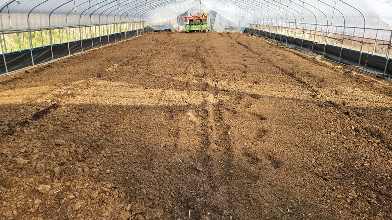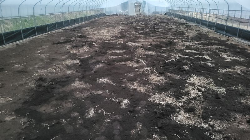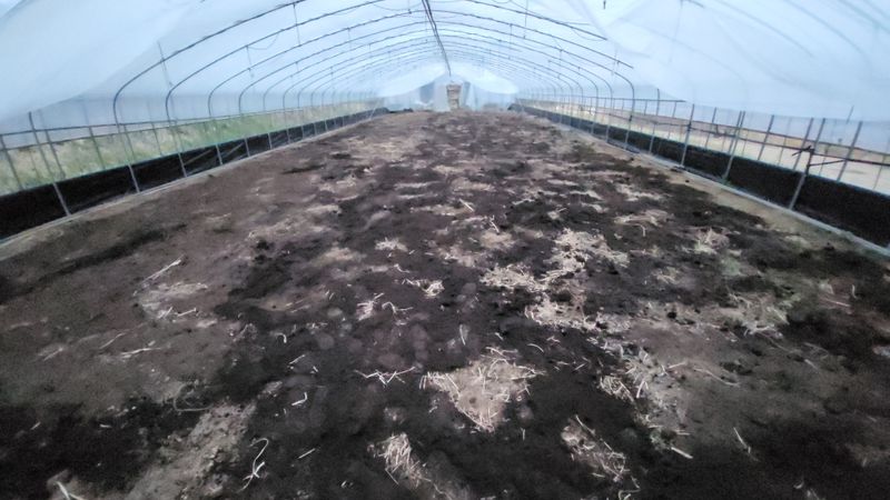 비가림 고추 심을 장소에 퇴비하기 - 150평기준 1.2ton 스프링쿨러로 물도 주었습니다. - 40분 2회