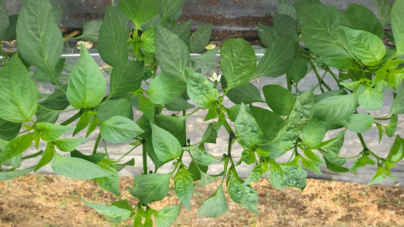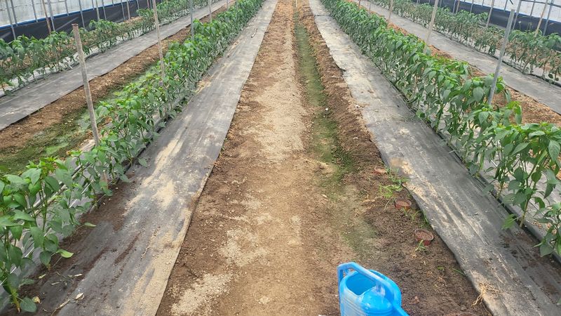 비가림고추 착근중 일기25℃되니 나무도 지침