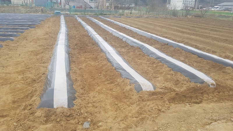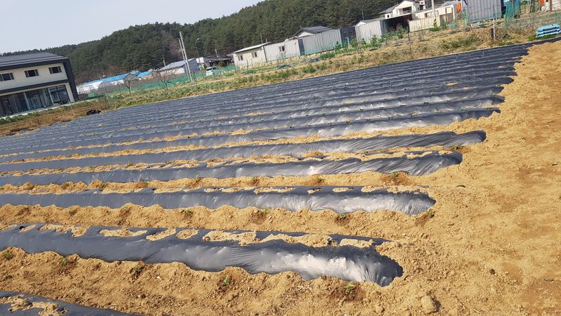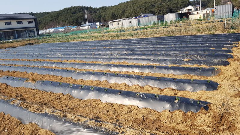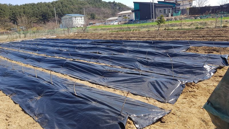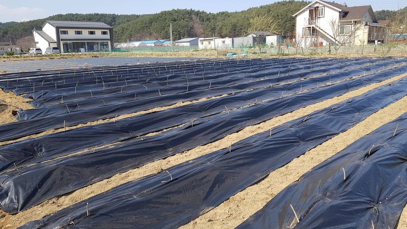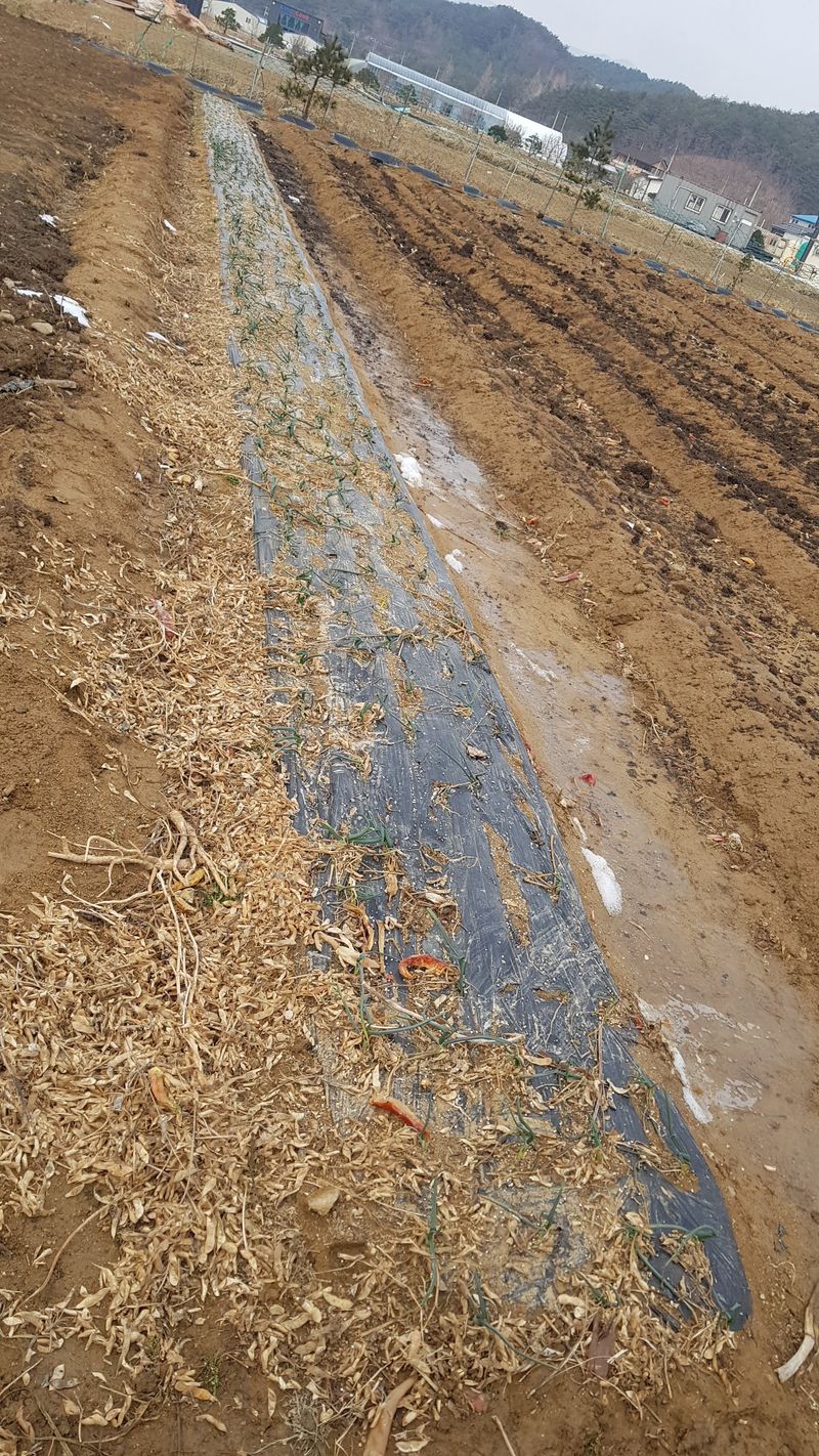 마늘밭 부직포 설치 양파 두둑 파쇄깨대 덮기 하우스 창고 정리