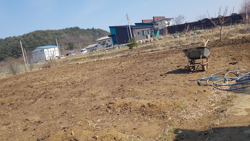 밭 흙넣기(물고이는 곳) 거름 뿌리기