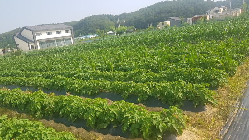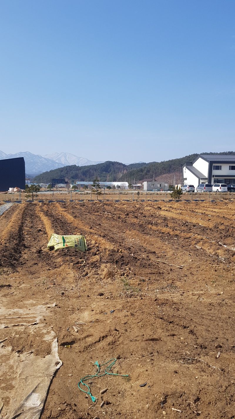 밭 로터리 작업 고추2고랑, 감자 8고랑 만들고 감자고랑에 감자심기 26일 고추4, 옥수수 12, 엄나무 12고랑 더 만들고 비닐 피복예정