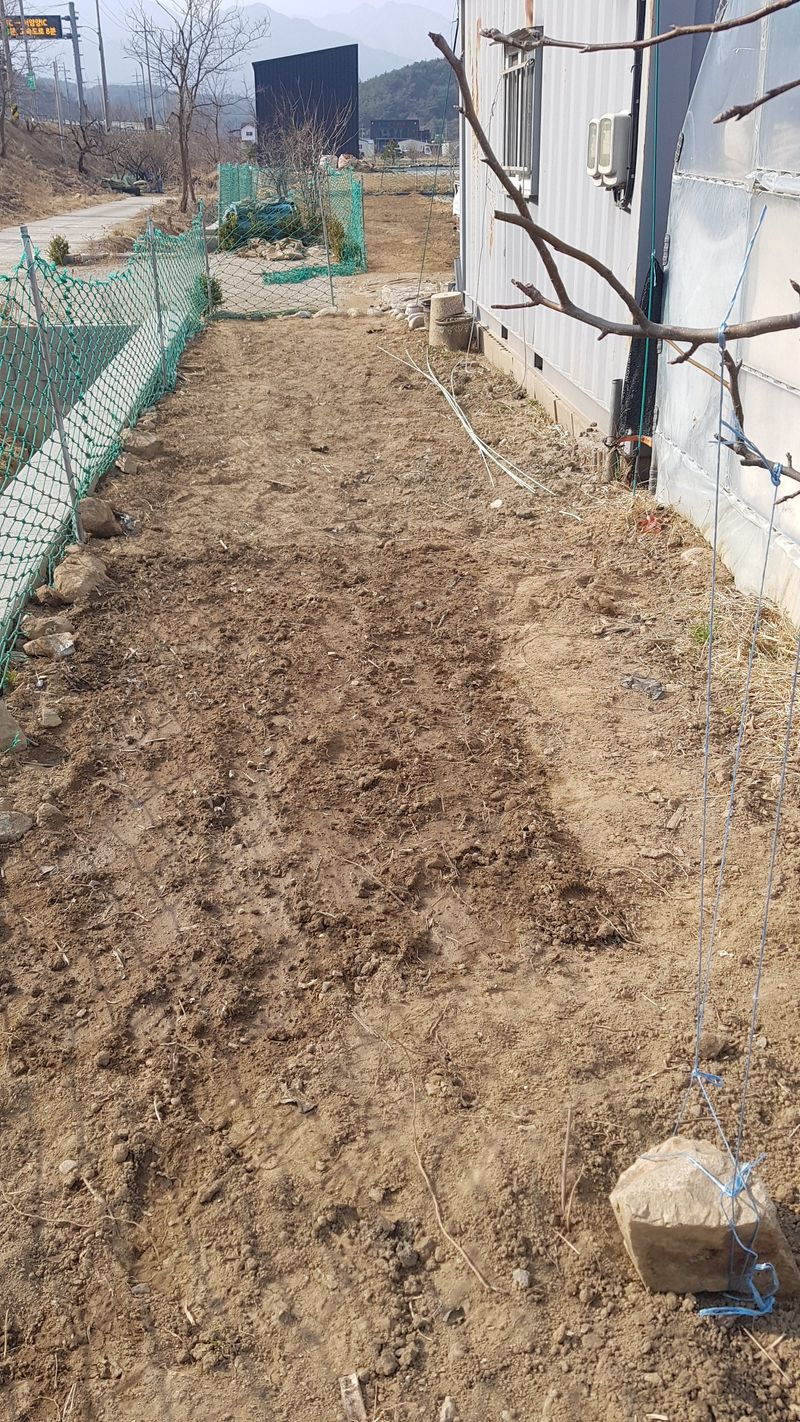 옥수수 씨앗 1봉 인수 부추 옴겨심기 울타리 설치 하우스정리 밭 정지작업