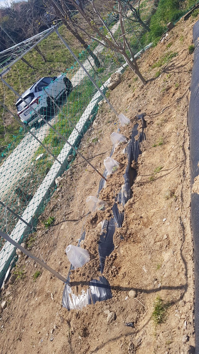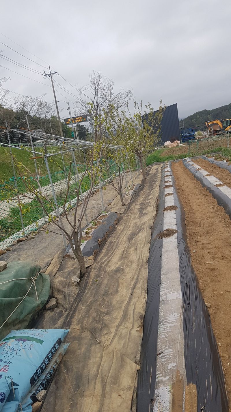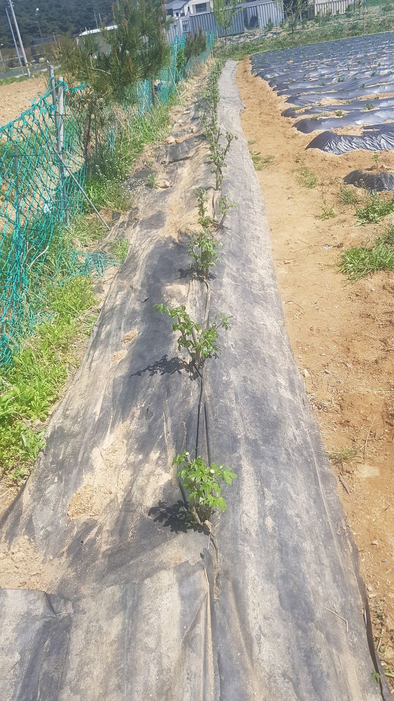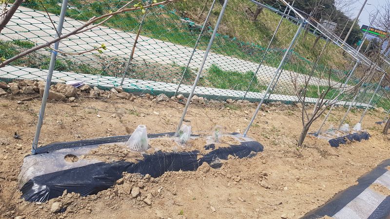 두릅나무묘목 고랑 잡초 매트 재설치 옥수수 포토 이식작업 150구