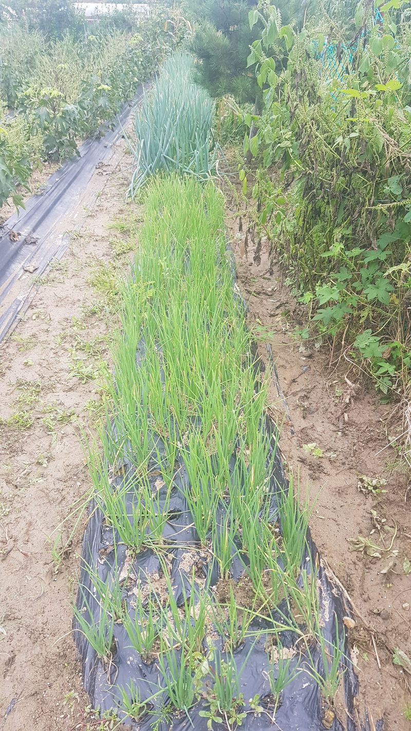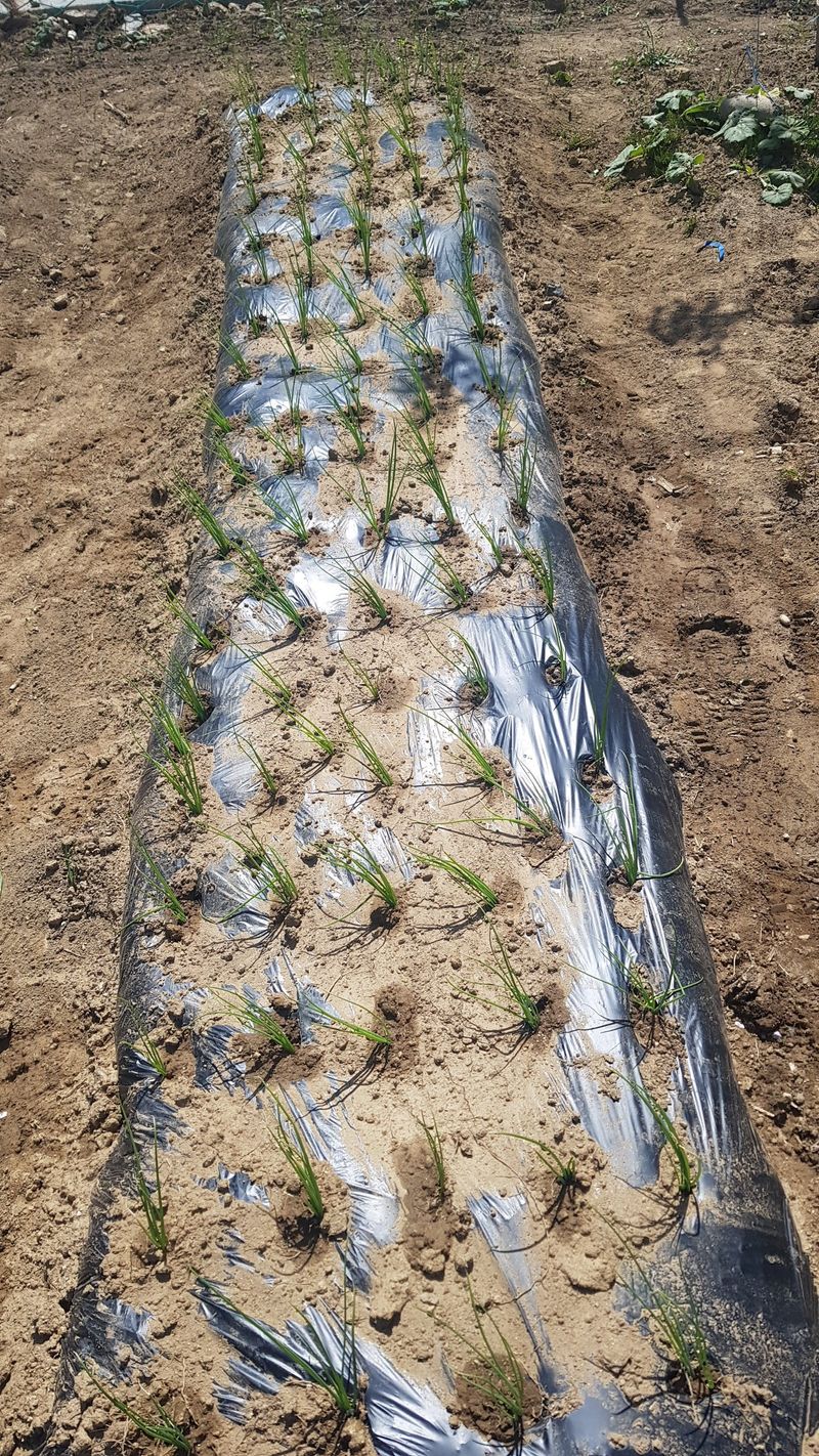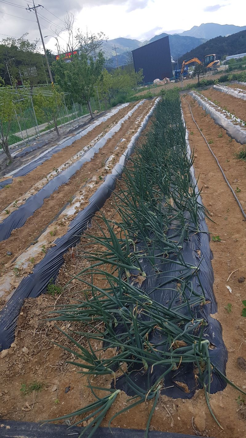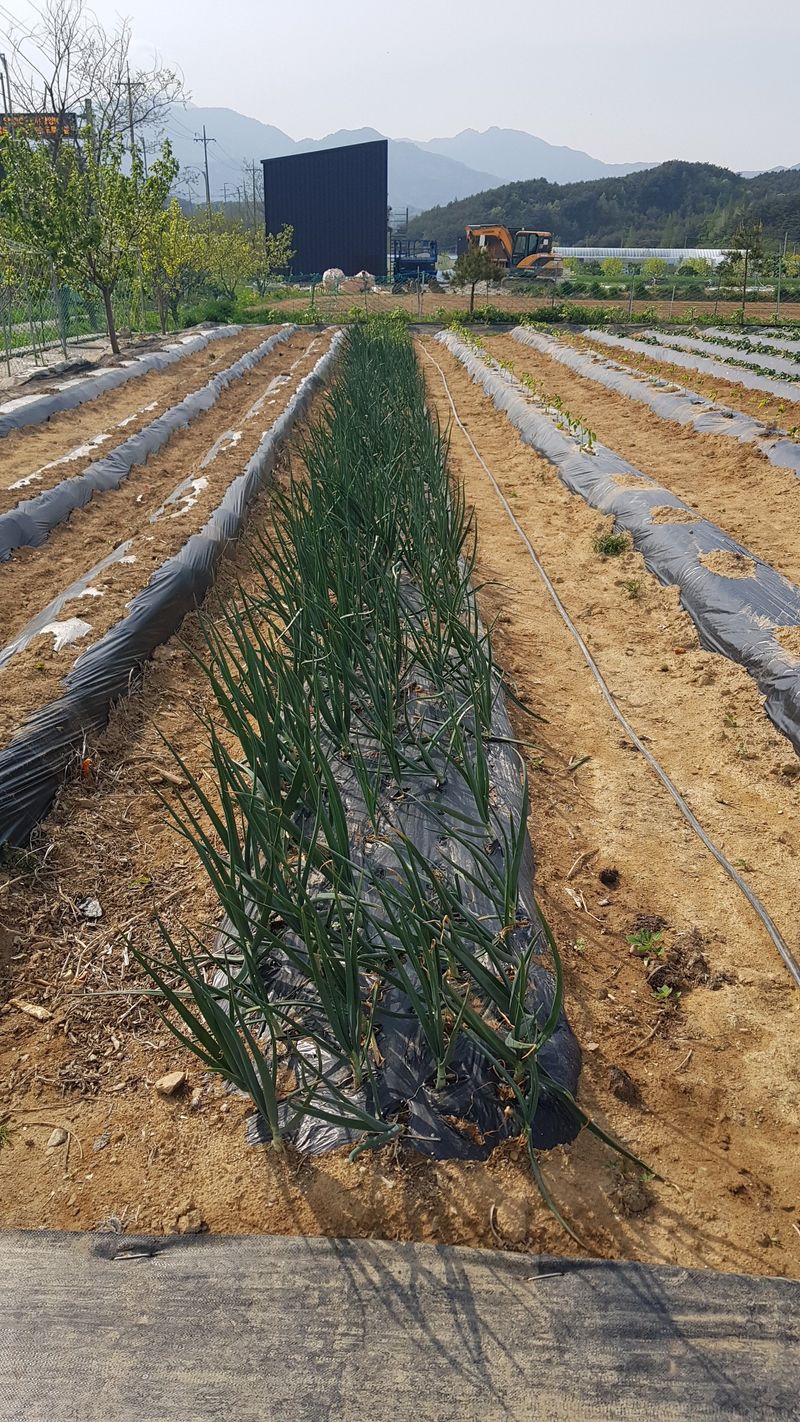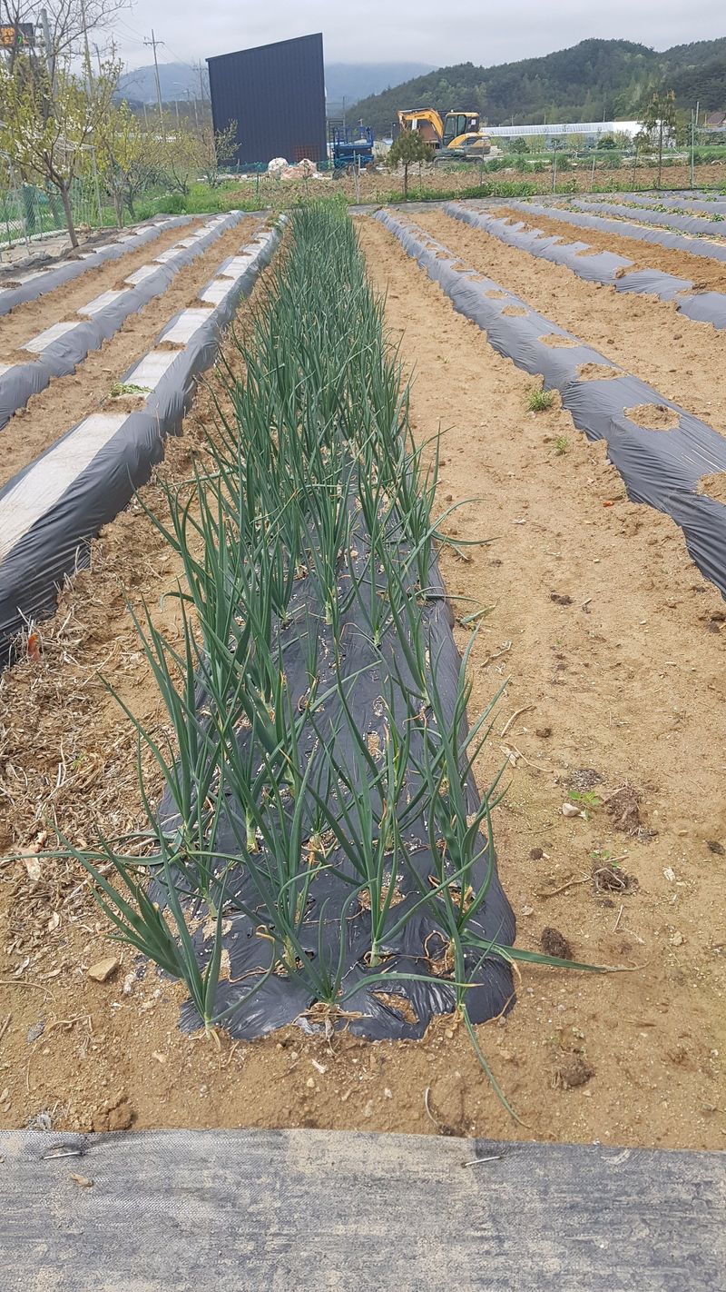 양파, 마늘 추비주기 제초매트 설치 감자 순 자르기 열무씨 1고랑 뿌림 쪽파, 부추주변 잡초제거