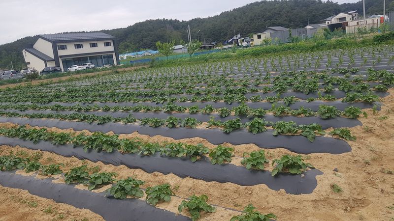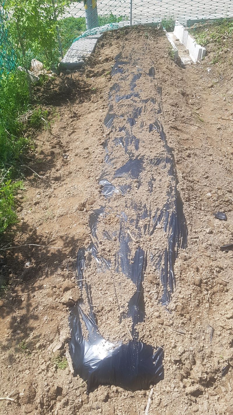 수박, 참외, 여주 모종심기 감자 순 끄네기 배수로 정비작업 제초매트 핀 고정작업