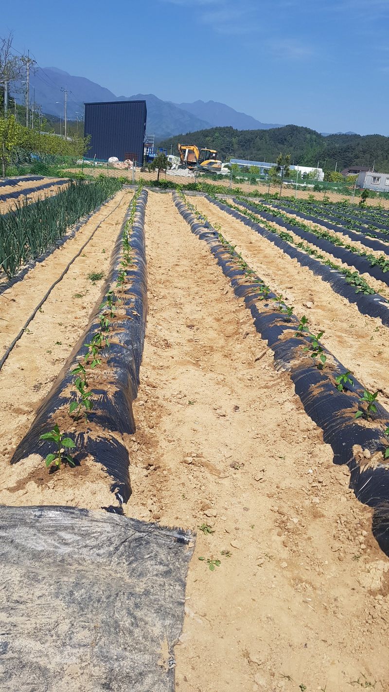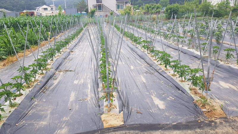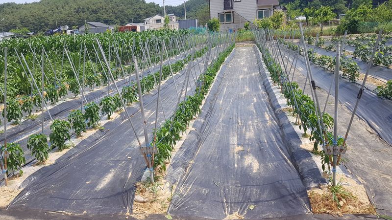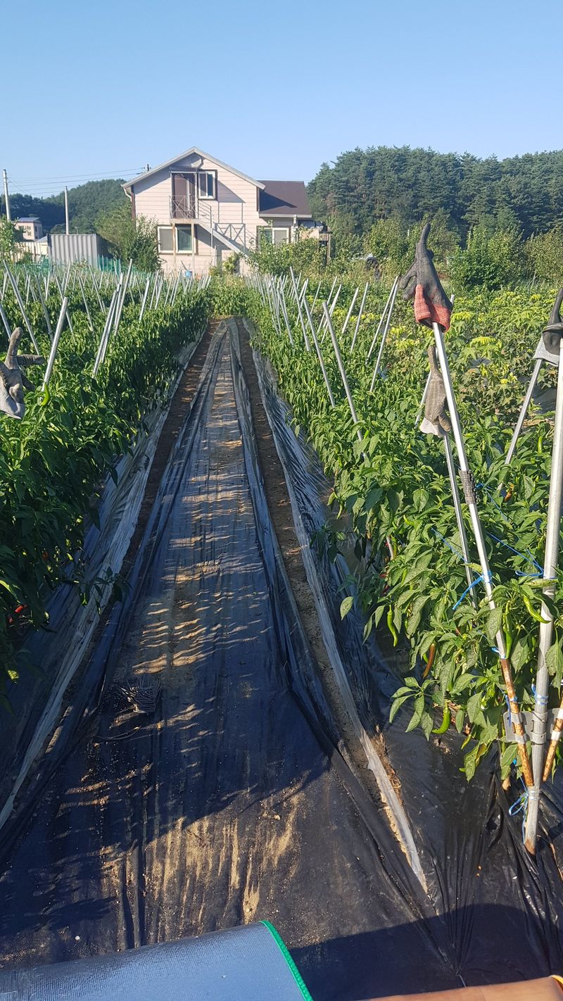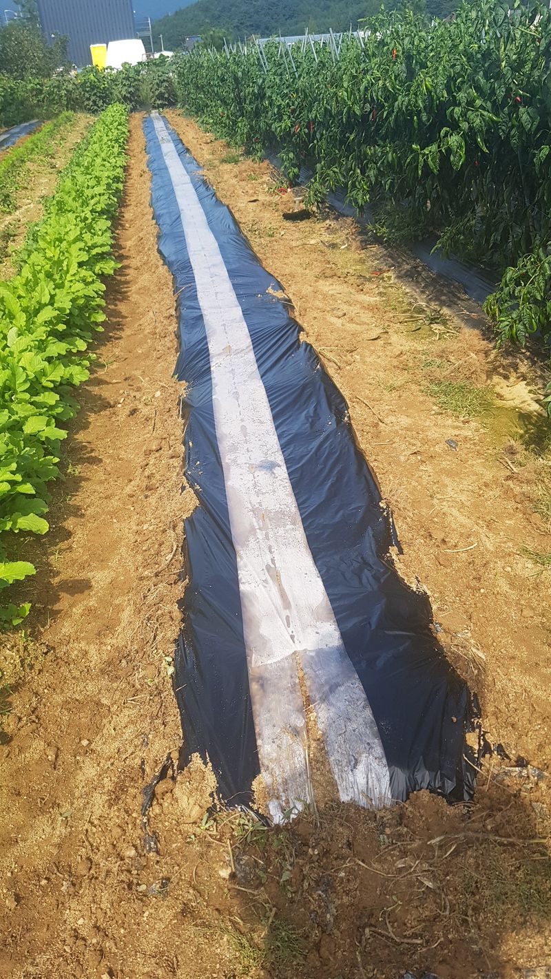 고추 고랑 잡초매트설치 울타리밖 제초작업