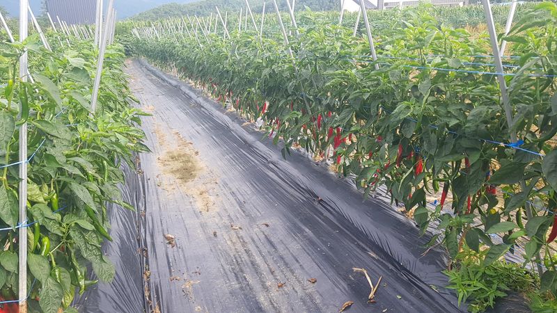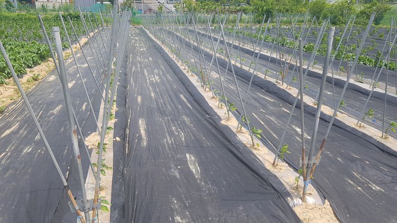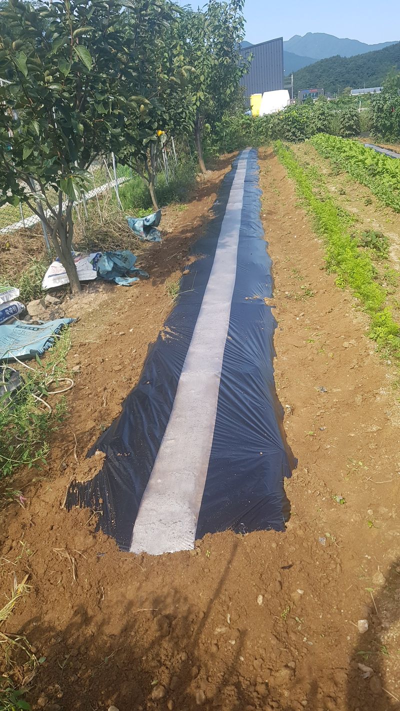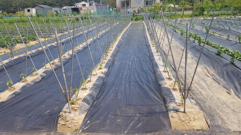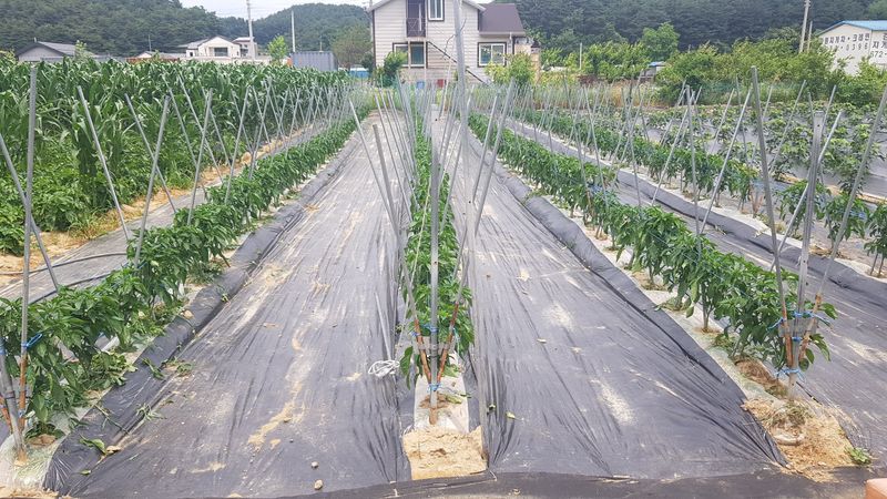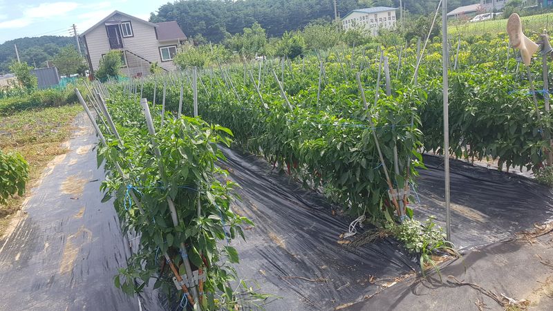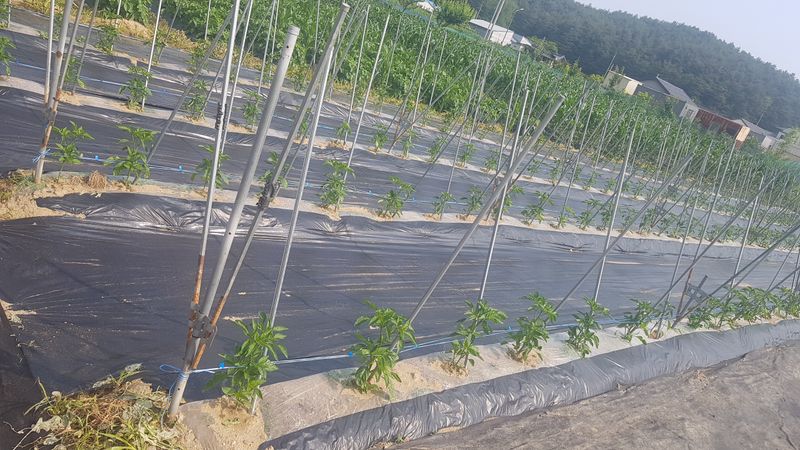 고추 고랑 잡초매트설치 울타리밖 제초작업