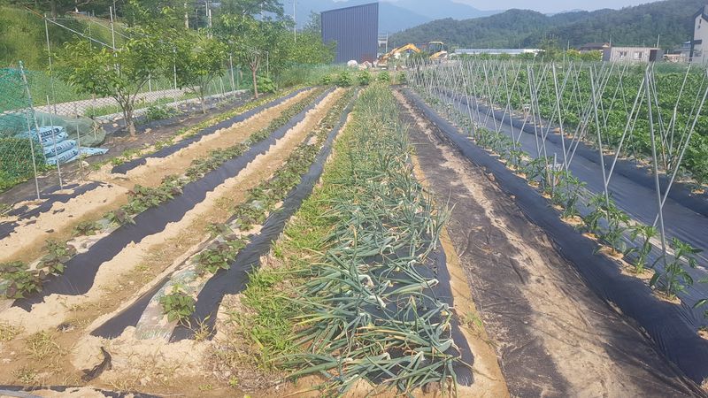 고추 살충제 및 영양제 살포 고추줄 띄우기 옥수수 살충제 살포 감자 살충제 및 영양제 살포 양파 수확 들깨 포토 물주기