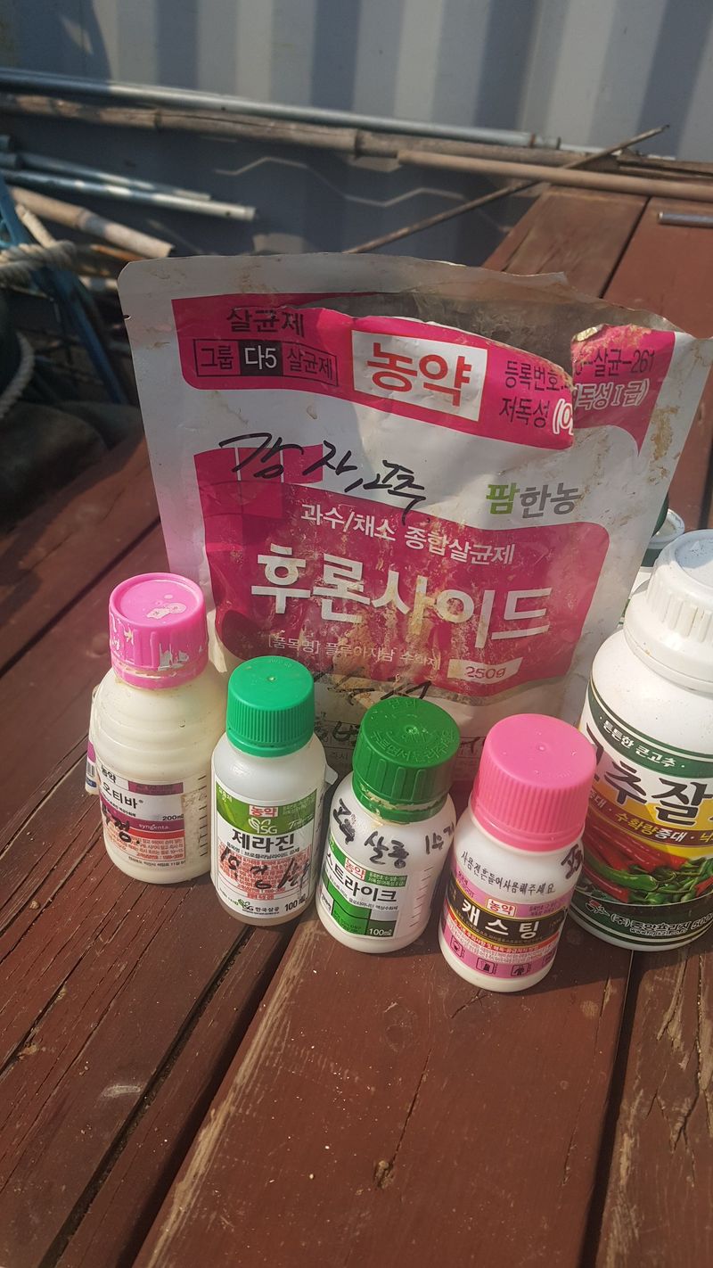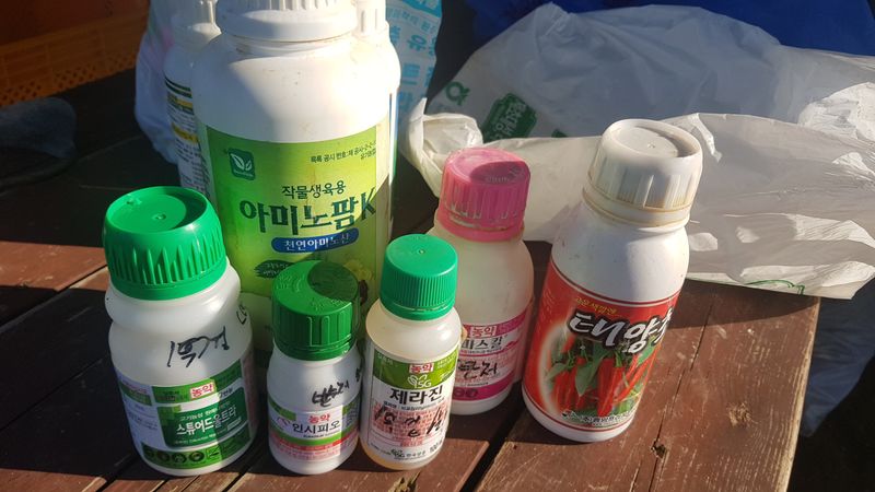 비료인수 완효성(단한번)2포 복합 5포 요소 1포 인산칼리(맞춤2호)3포 슈퍼고추/감자 5포 고구마 비료 1포 칼슘유황 5포 출근함