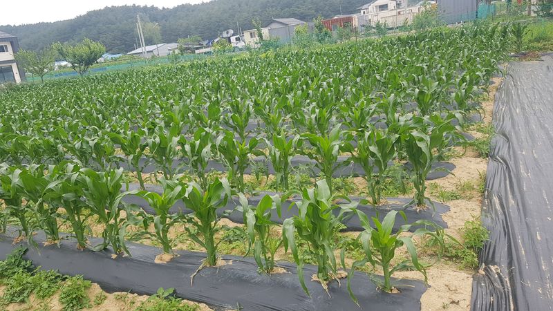 엄나무 물주고 고랑 제초매트 설치 작업 11고랑 옥수수 포토 물주기