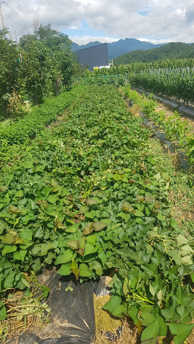 고추 살충제 및 영양제 살포 고구마 고랑 잡초 제거 들깨 생육상태 확인