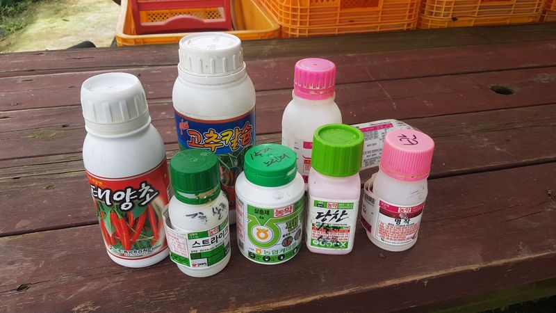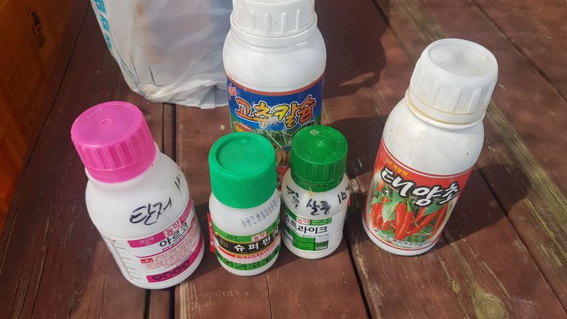 고추 살충제 및 영양제 살포 고추 70근 방아 배추 살충제 살포 들깨 생육상태 확인