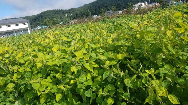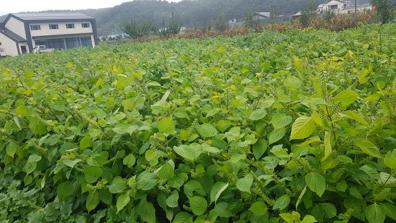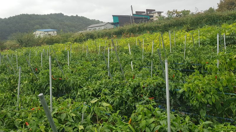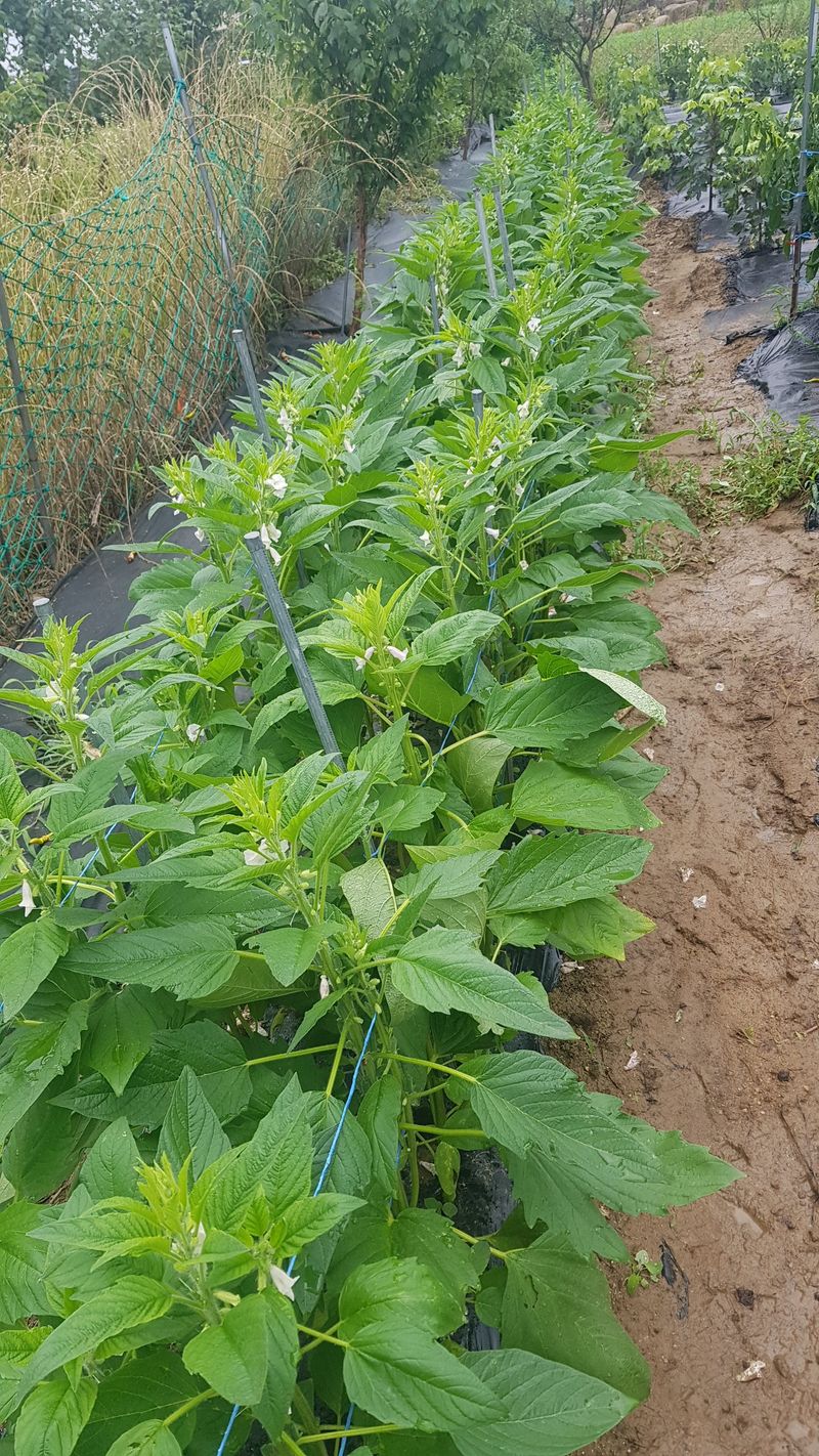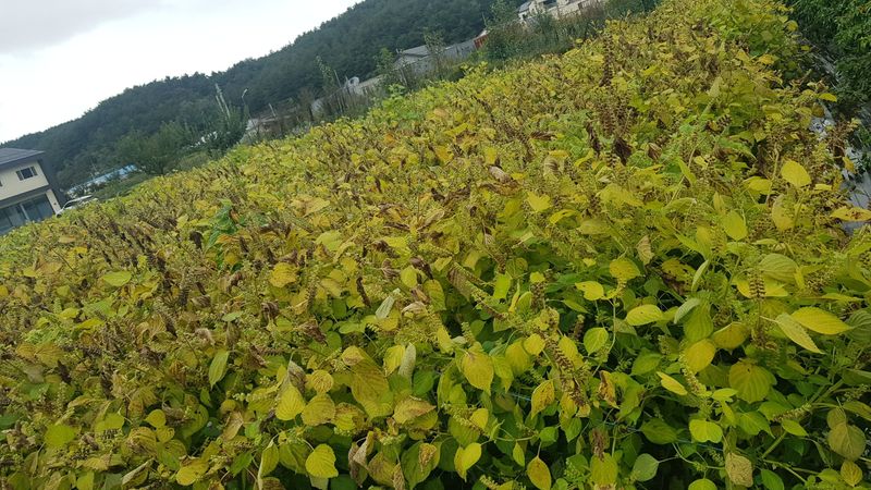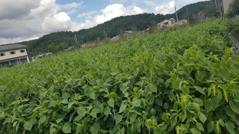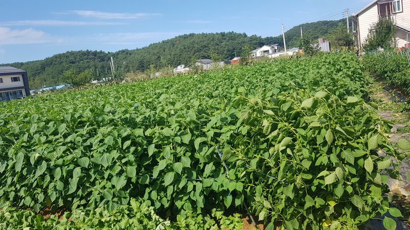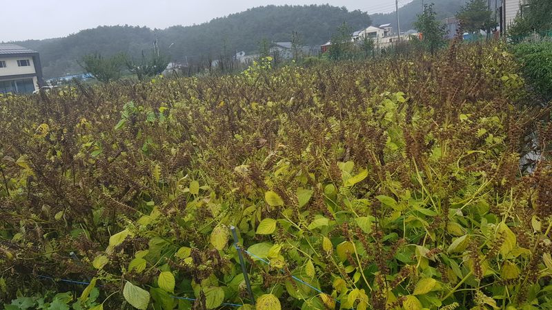 오늘부터 15일까지 비가 온다고 하네요 밭으로 가서 들깨, 배추, 고추 생육상태 확인 하는데 들깨잎이 누렇게 변해서 추수할때가 멀지 않았는데 비가 계속 내린다니 걱정입니다