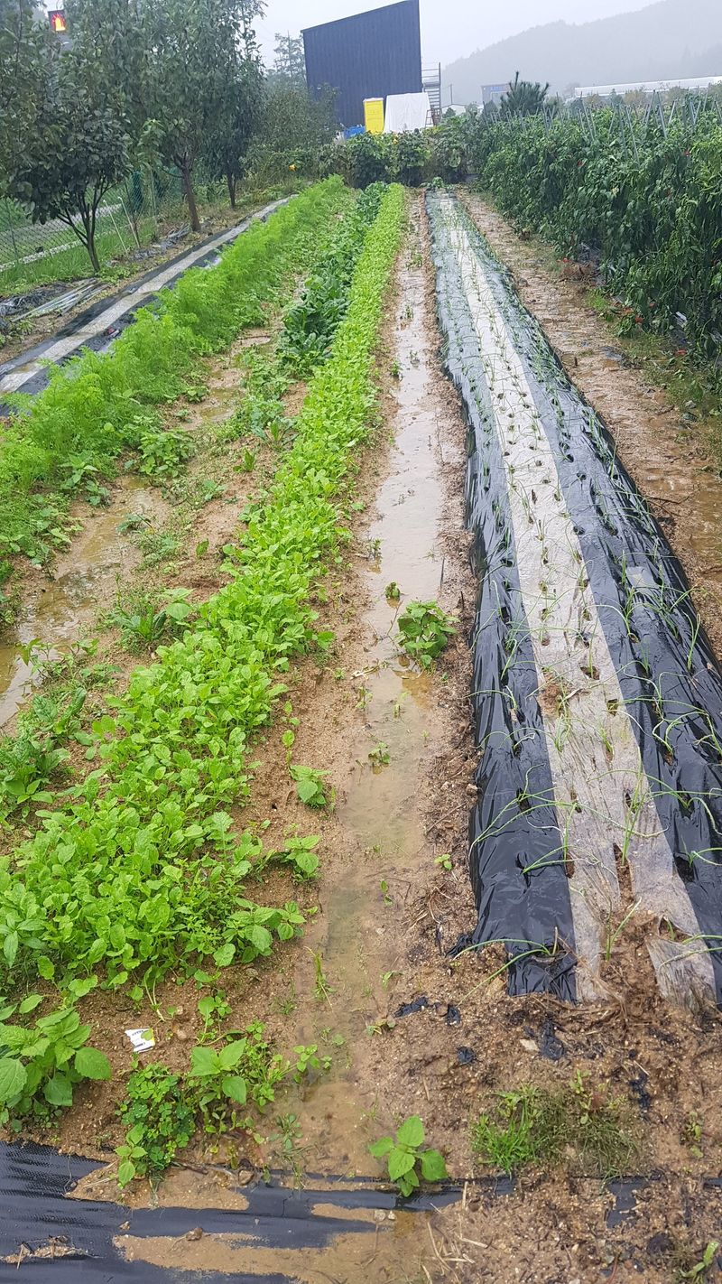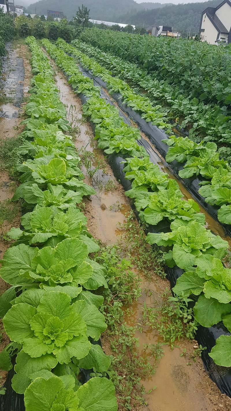 비로인하여 밭에 들러 봄 배추 무름병으로 6포기 뽑기 들깨 생육상태 확인 언제쯤 수확 할 수 있을까 비는 계속 오고 ~~~~