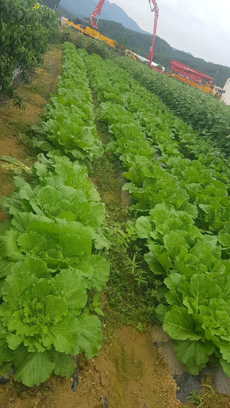 비로인한 밭작물 생육상태 확인 23일 방재작업 예정입니다 건조고추 선별작업 들깨 비로인하여 쓰러짐 생육상태 확인 배추 생육상태 확인