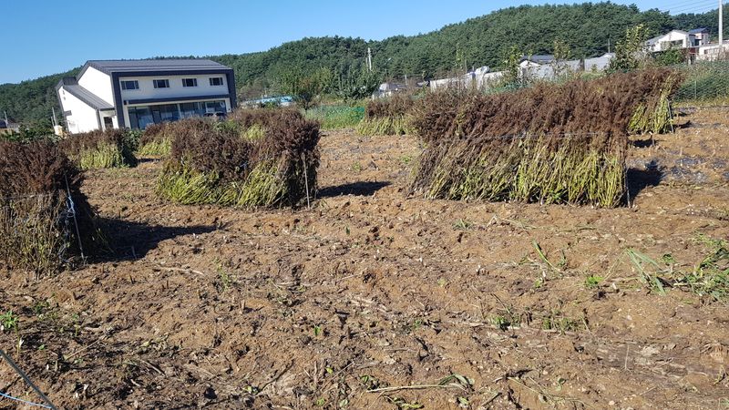 들깨 건조중 개드릅 두둑 2개 정리