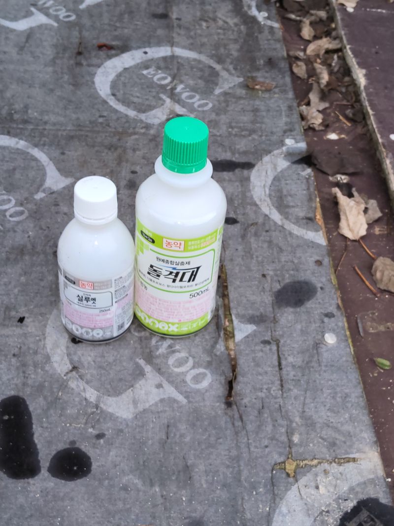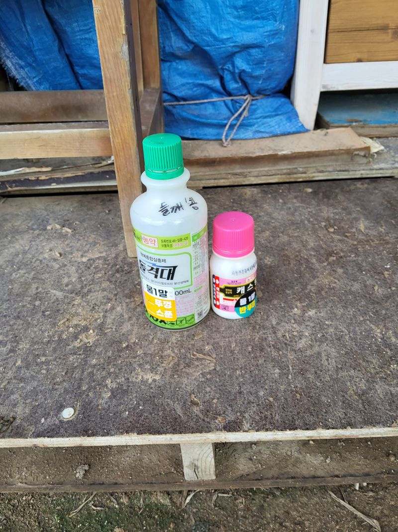 들깨밭에병충해약주기하옇다프로키어100c에아세트칼150cc섞어서주었다