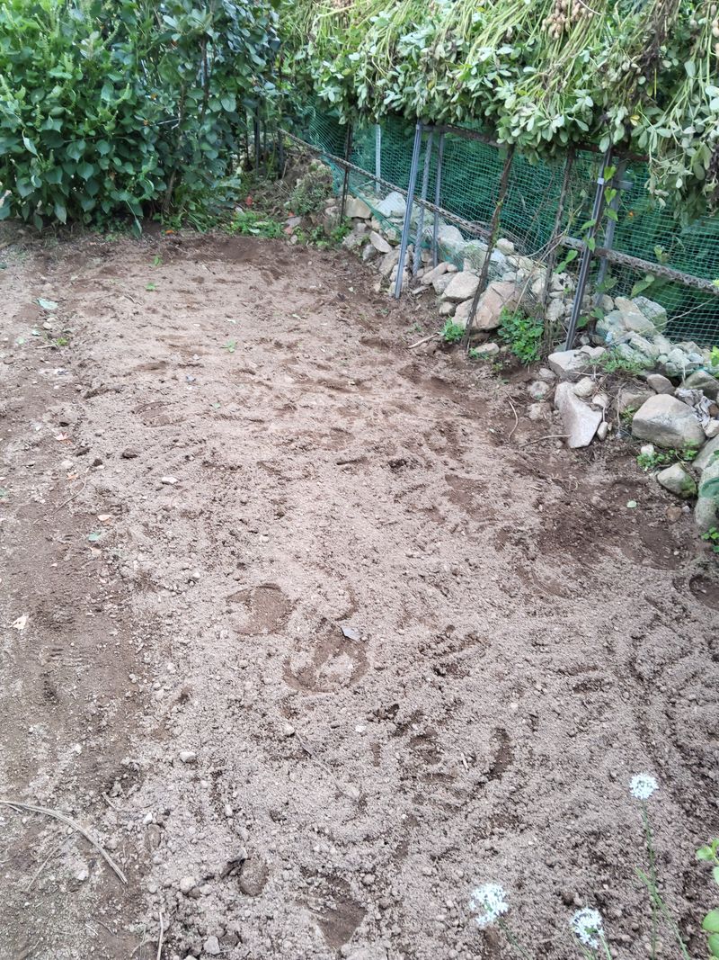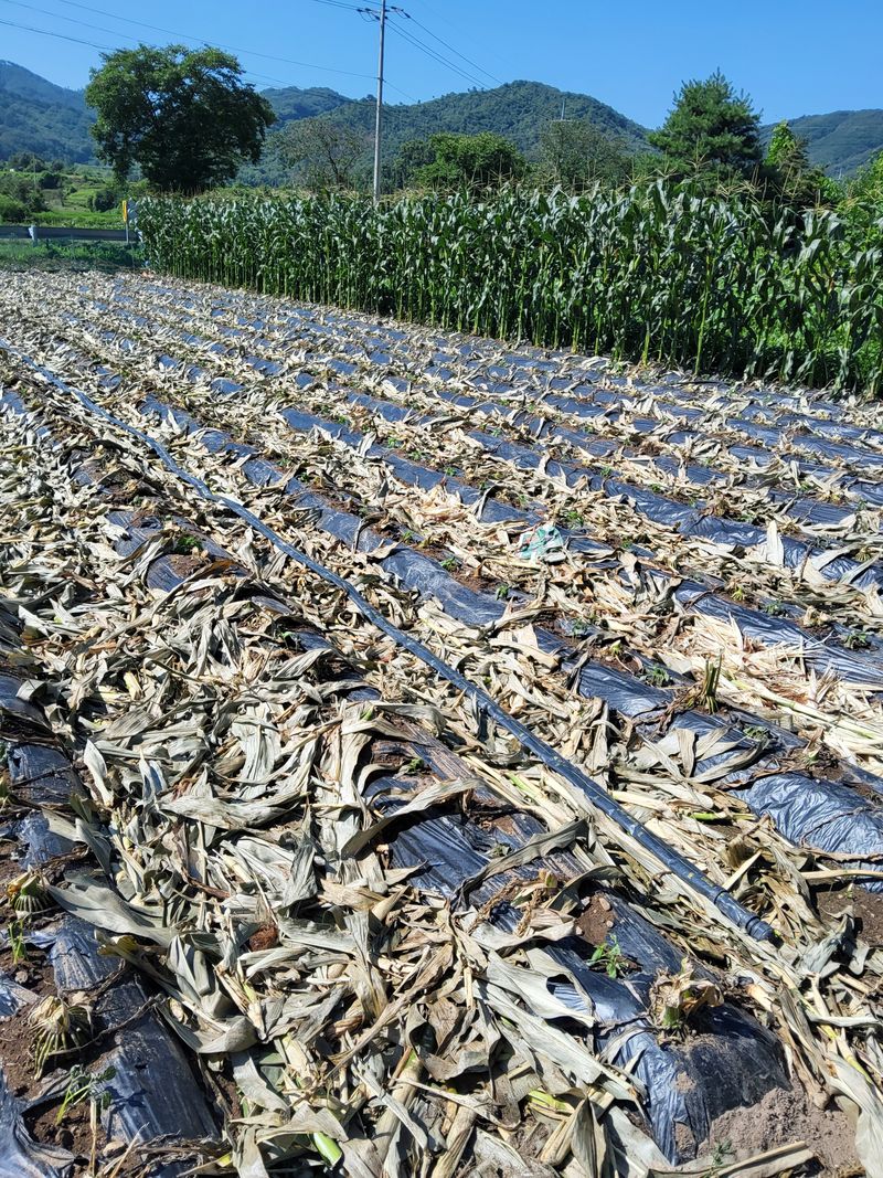 배추밭에붕사후론시이드 나가충 사이매트뿌리고두럭만들고점자호스넣고두럭샇기하였다