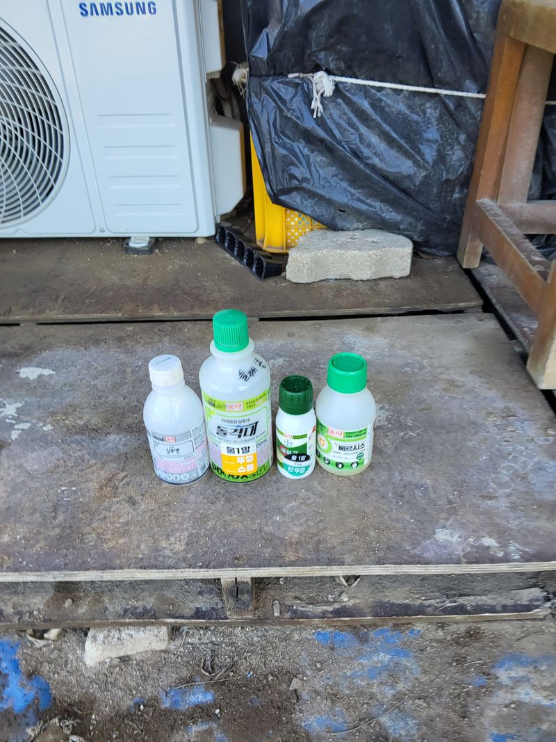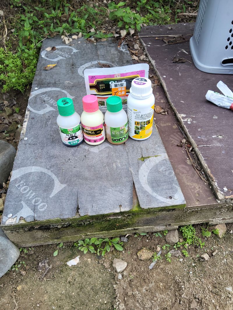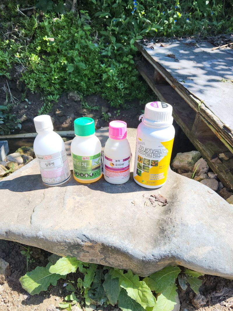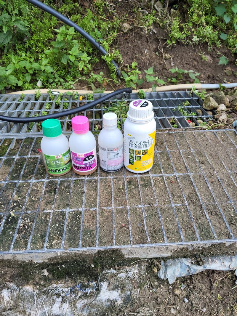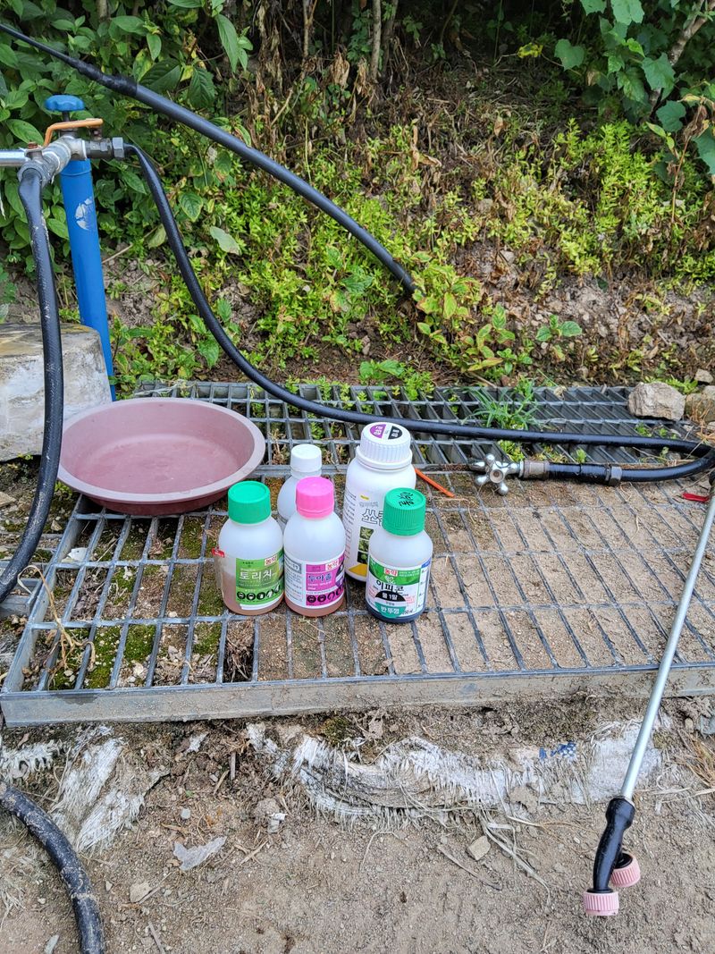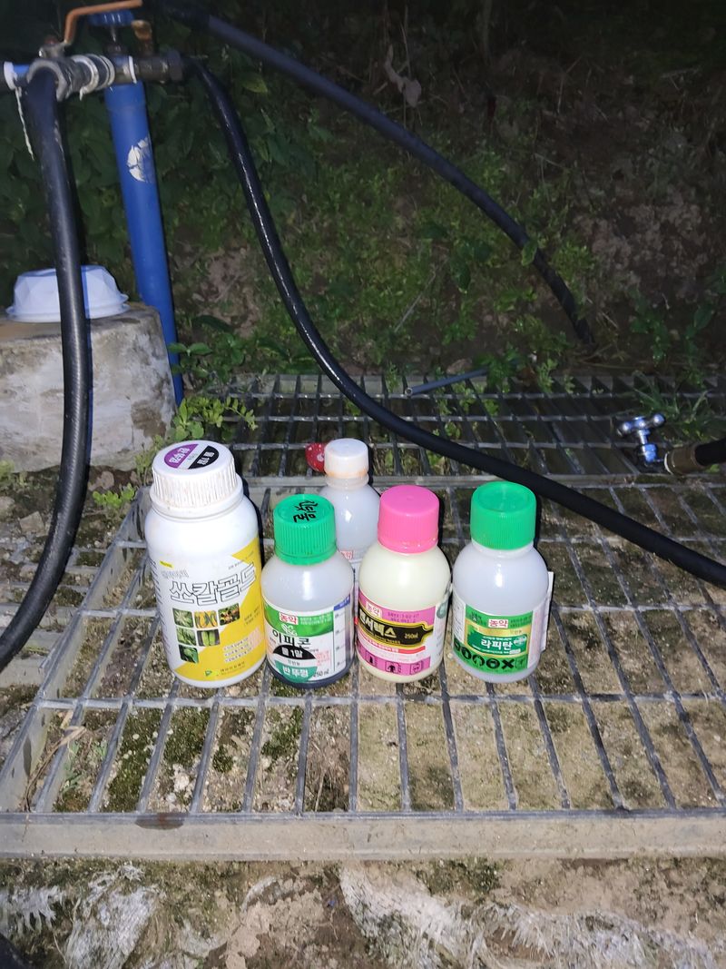 고주밭에병충해약주었다슈퍼펀치일등탄아세트갈섞어서80리터주었다