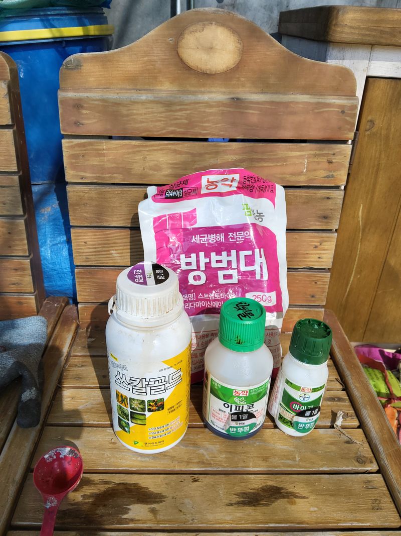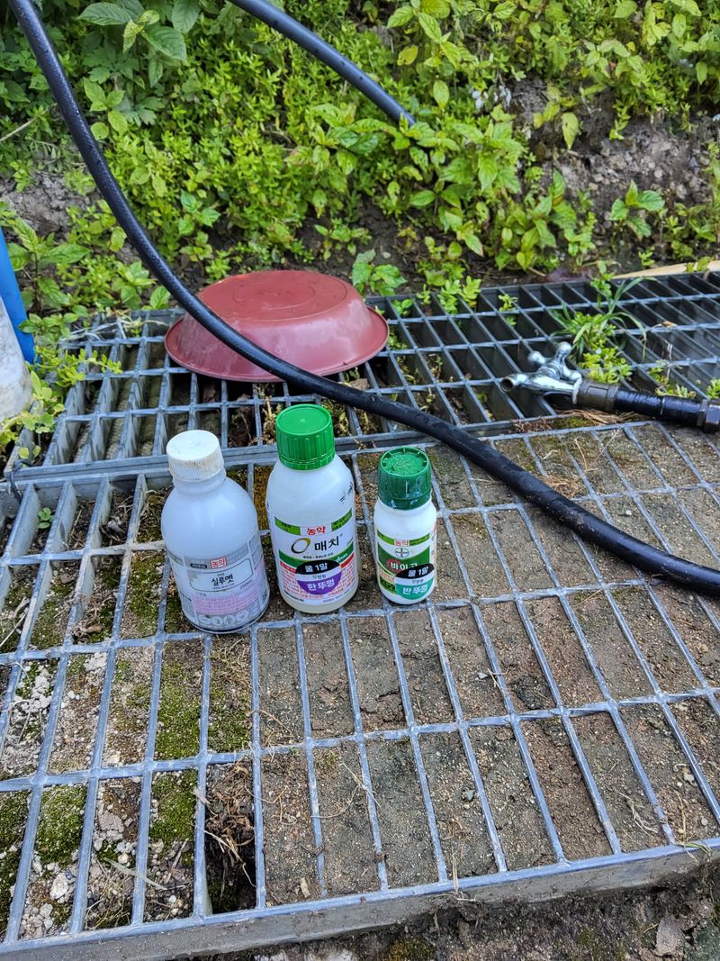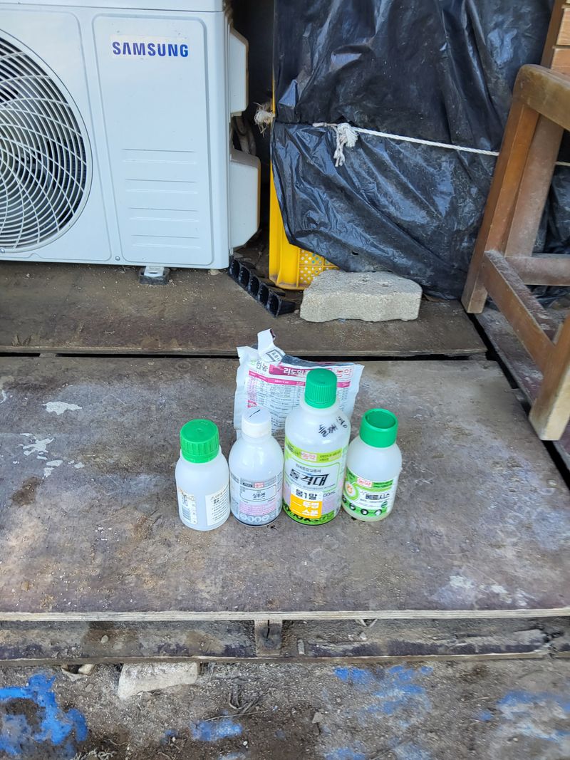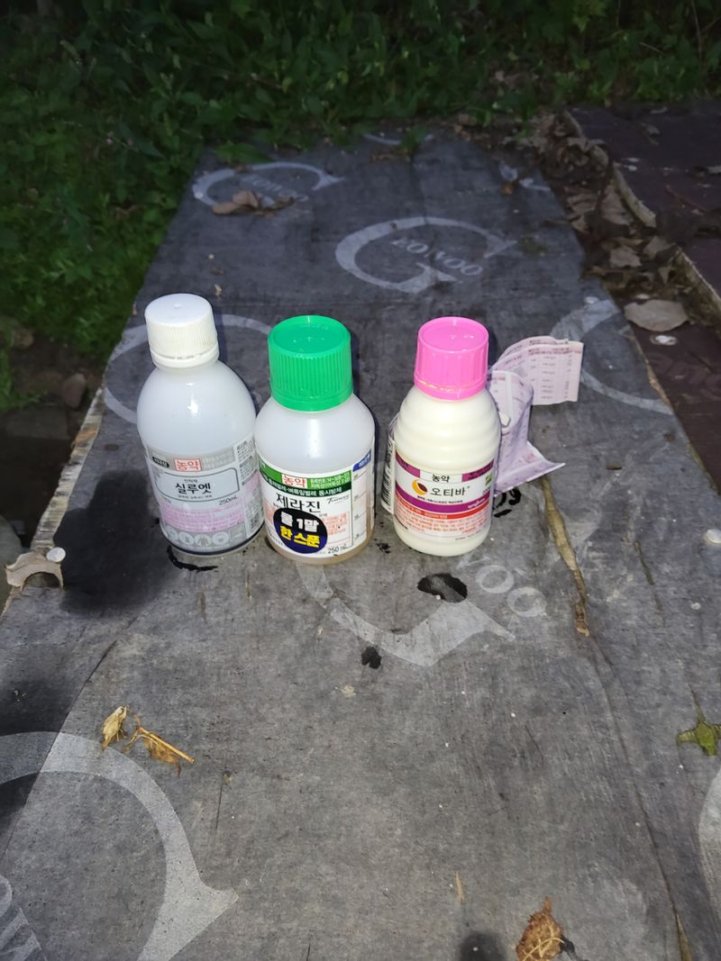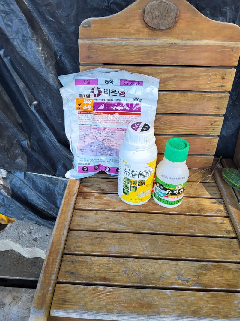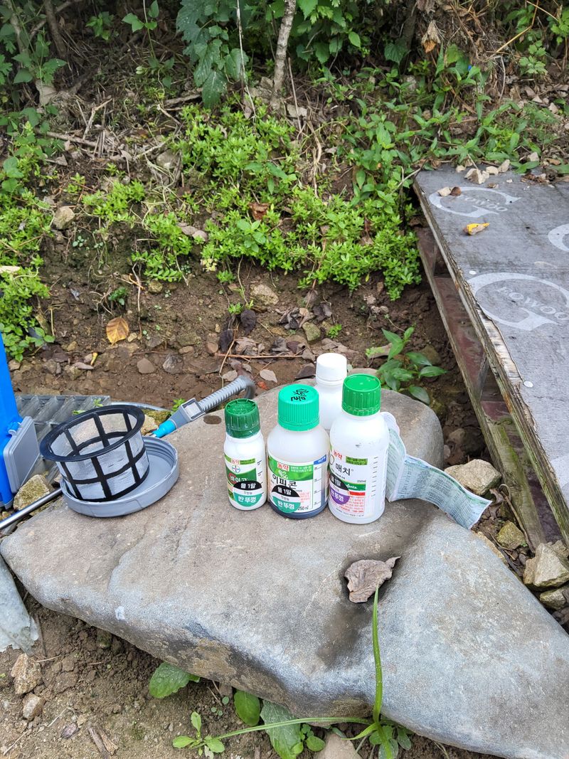 고주밭에병충해약주었다슈퍼펀치일등탄아세트갈섞어서80리터주었다