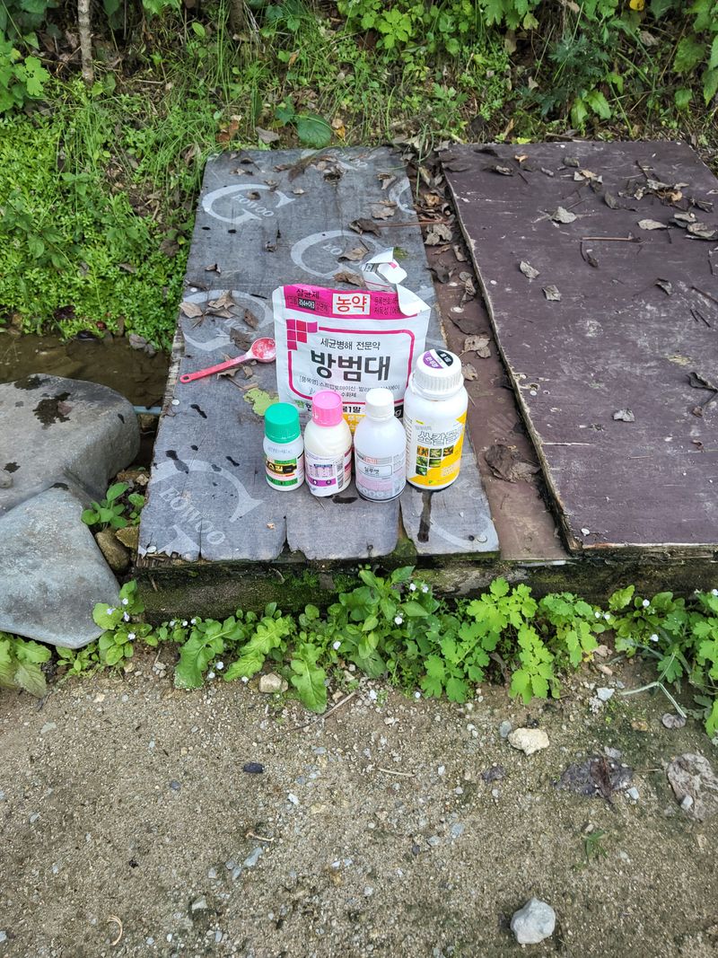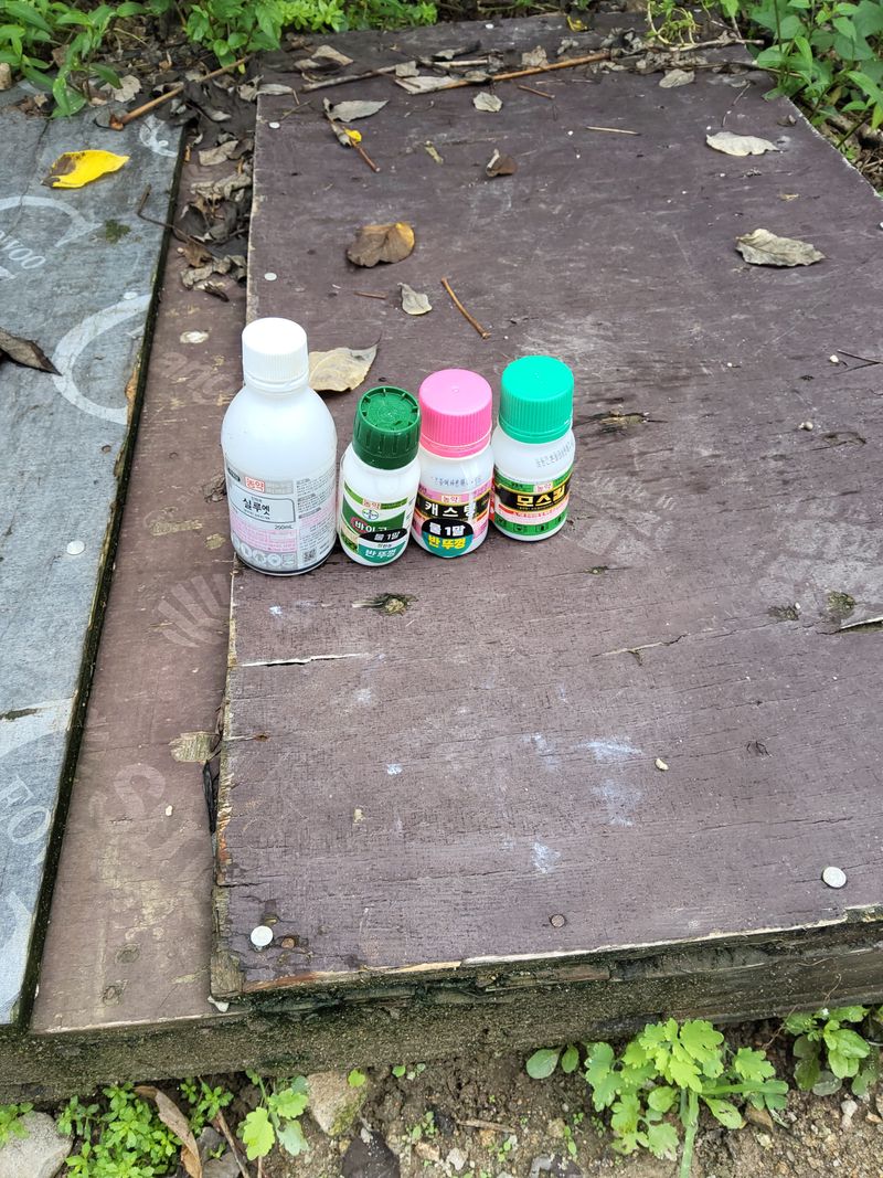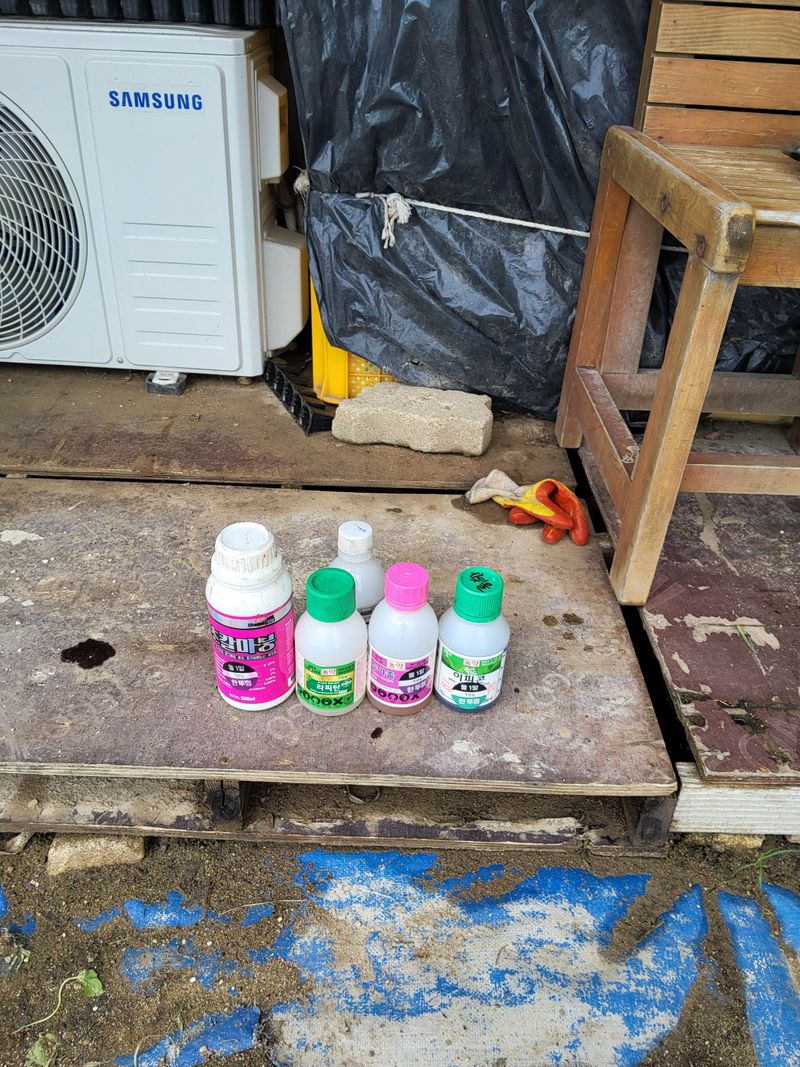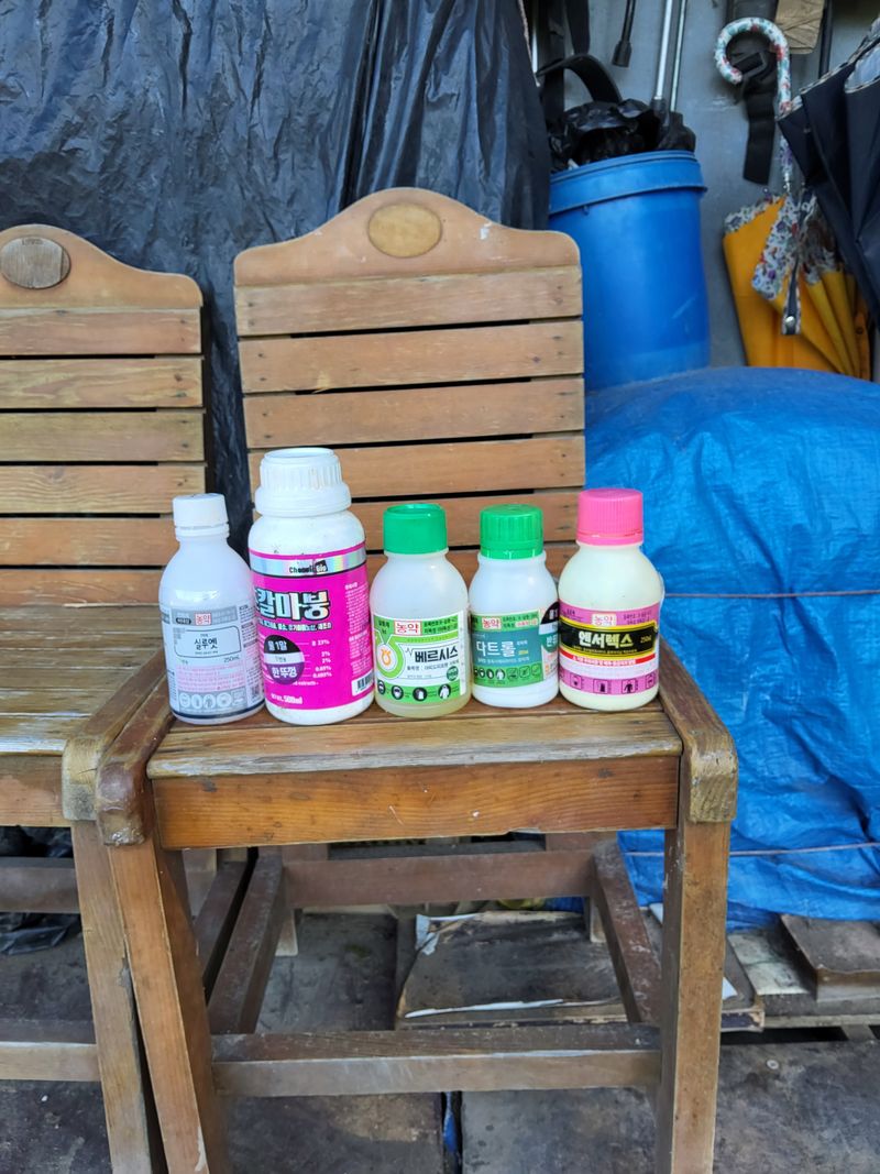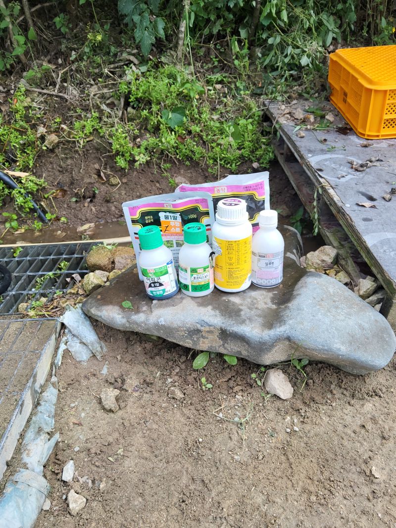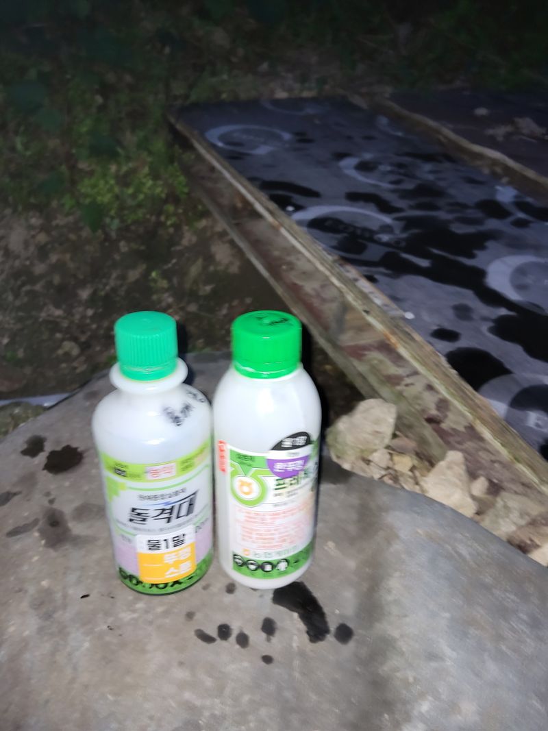 고주밭에병충해약주었다슈퍼펀치일등탄아세트갈섞어서80리터주었다