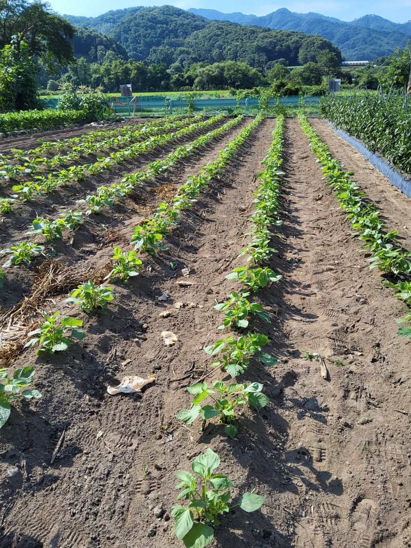 옥수수밭에10고랑들깨모이식하였다