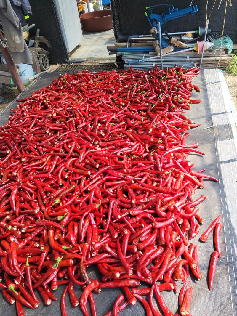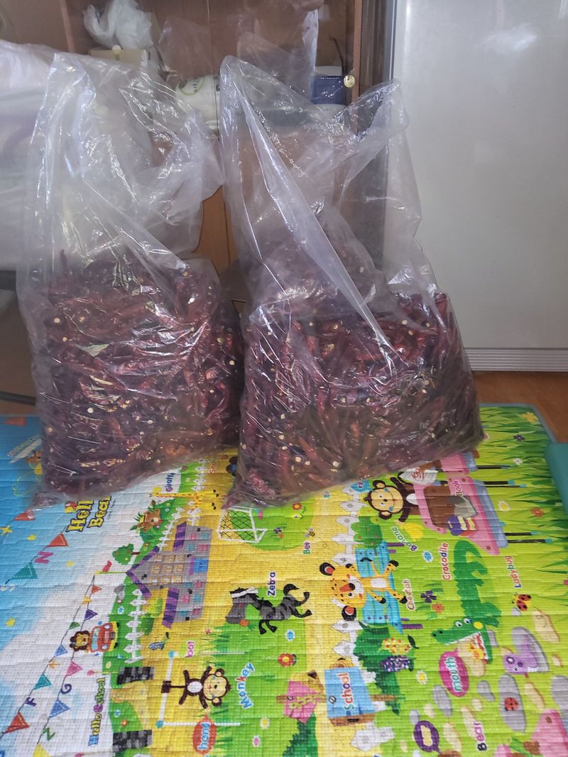 고추건조기예서수확하였음12kg수확하였다건조기에서9kg말려음계21kg수확함