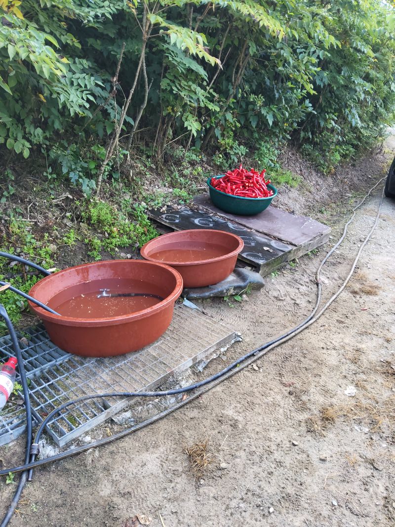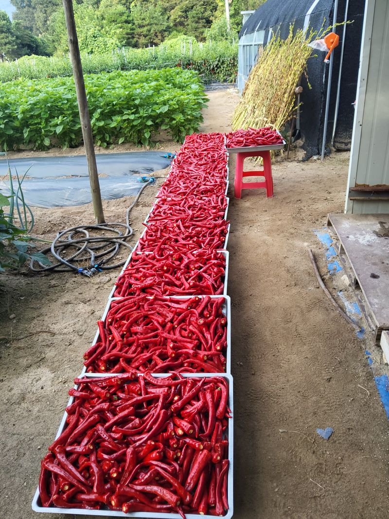 고추따서하우스에넣어노았다4박스수확했다
