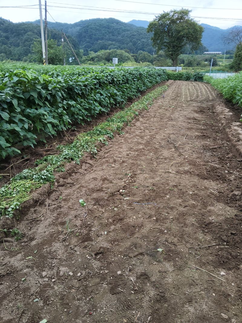 김자밭에붕사0.5kg카빈다1kg후론사이드0.5kg뿌리고나서두럭싸기하였다4고랑비닐피복하였다