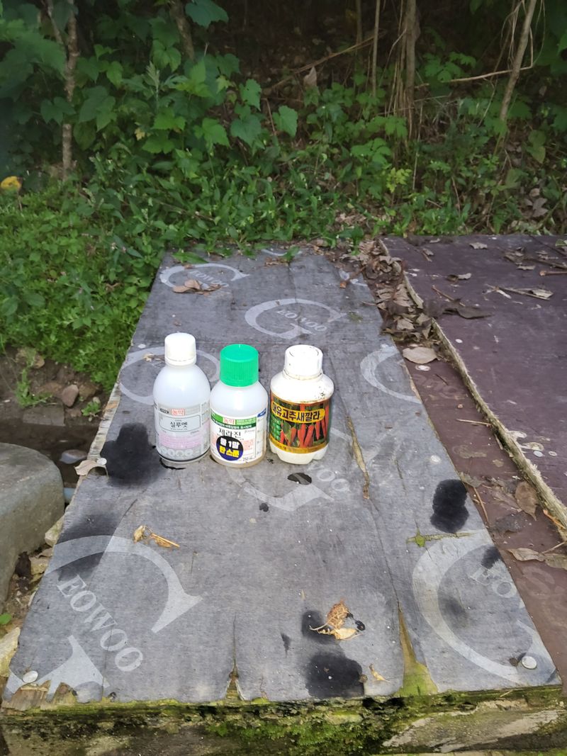 고추밭에병충해방제하였다60리터주었다