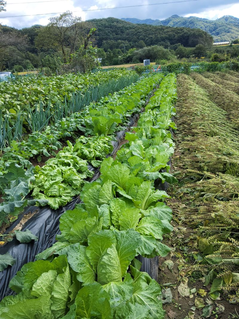 배추밭만들기하였음 쌀맛나15kg후론사이드 카빈다싸이메트붕사800g뿌리고나서두럭마든기하였음