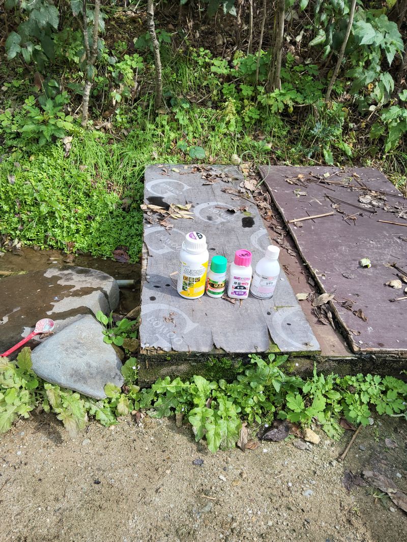 배추밭에병충해방제약주었다노균병무름병약에다살충제섞어서20리터.주었다배추밭에2차웃거름유니칼슘폭당10g주었다