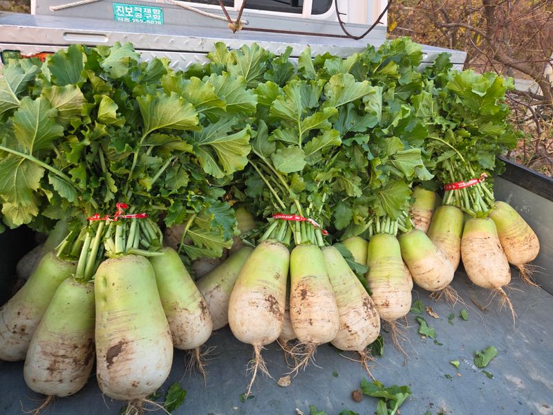 올해 홍삼마늘 수확하고,고추수확하고, 대파수확하고,벼수확하고, 배추.무우수확해서 소비자한테 판매함 배추200포기 무우큰것 60개 기타 상추, 시금치, 부추도 함