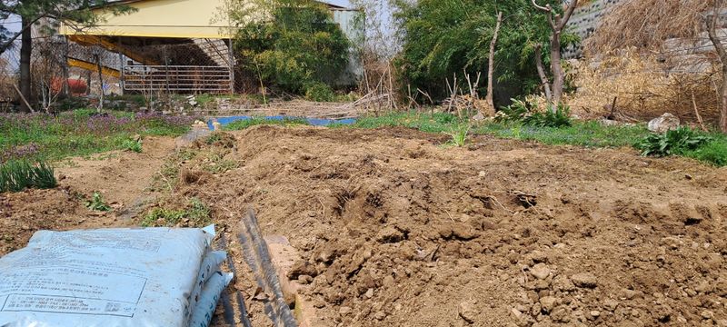 감자 심을 텃밭 두룩치기 완료. 유박비료도 함께 시비함.