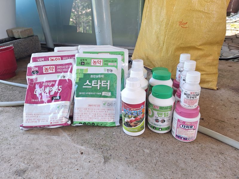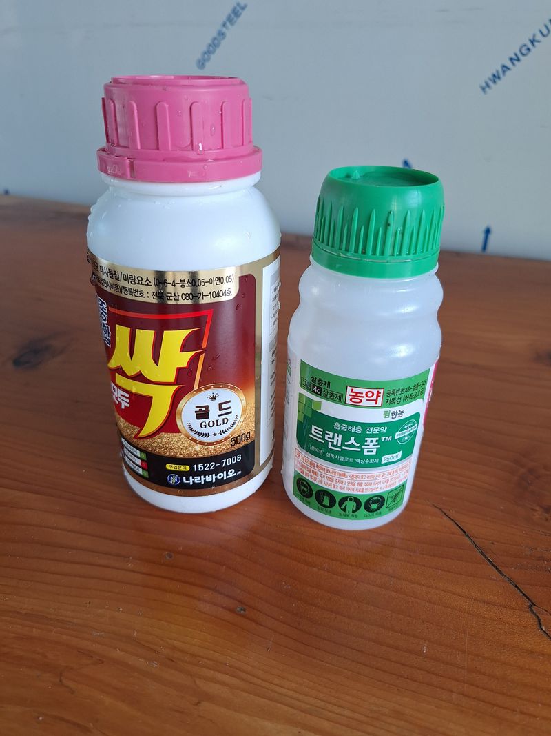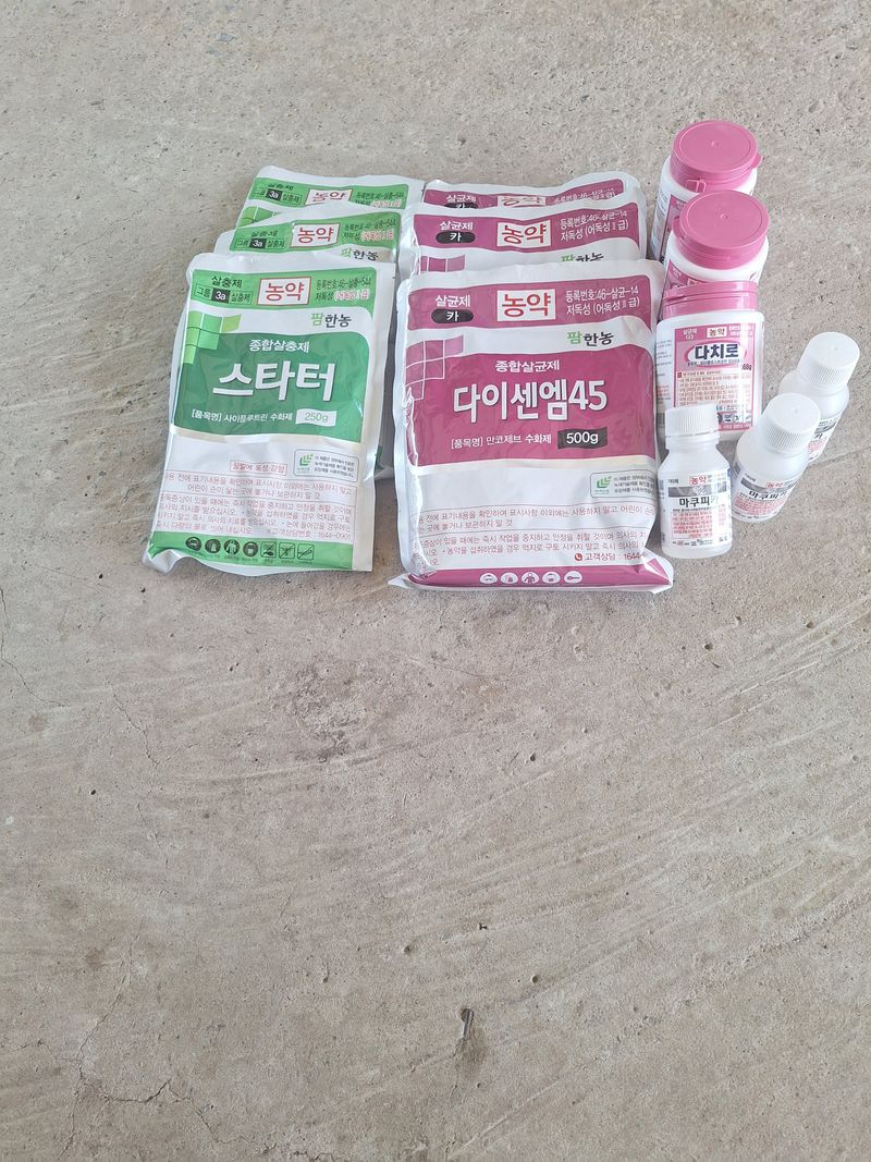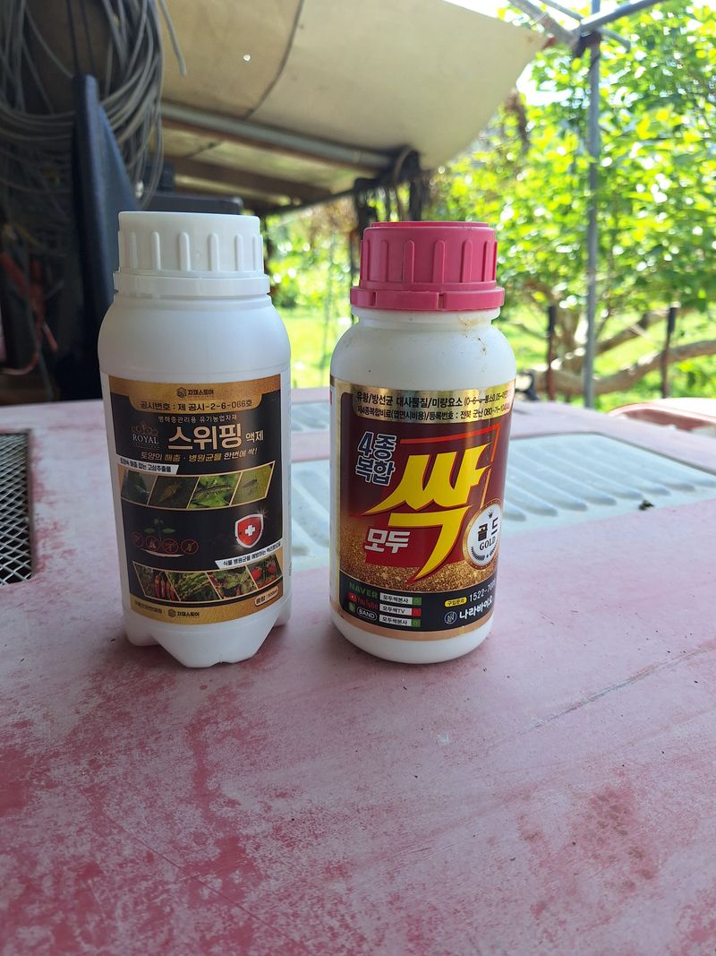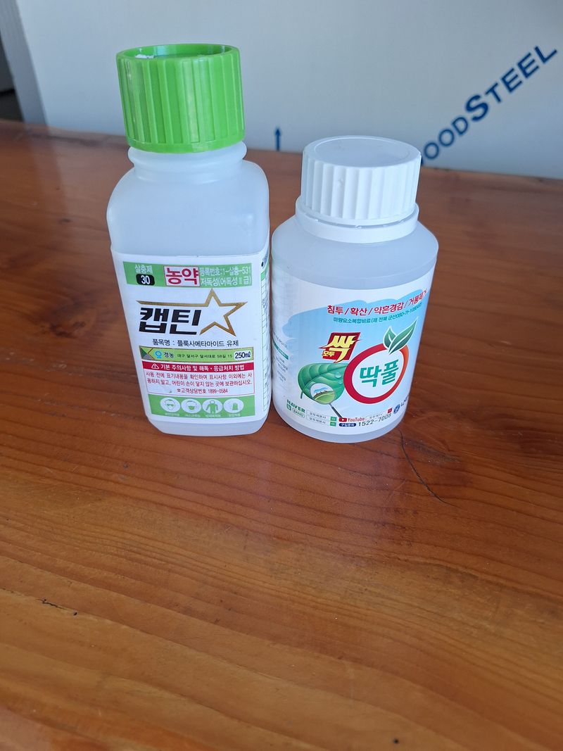 산딸기 혹응애약 1통살포함.캡틴250ml.싹 딱풀전착제250ml 1병 혼합해서500l, 사용.