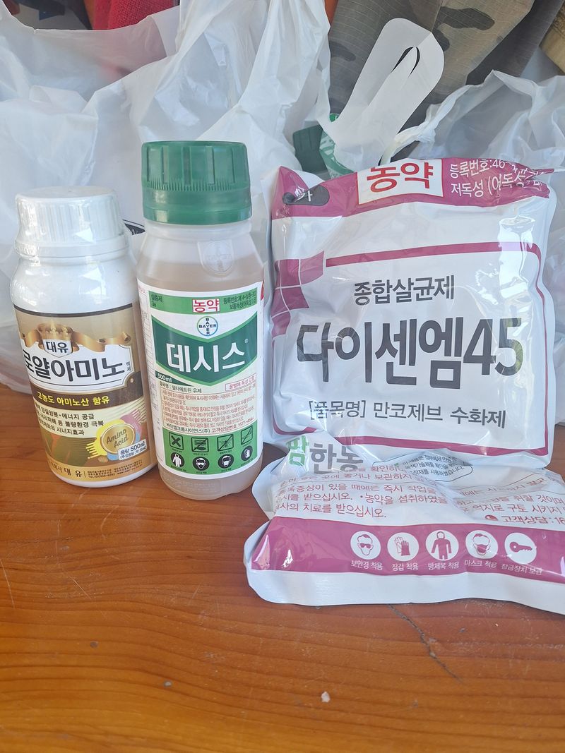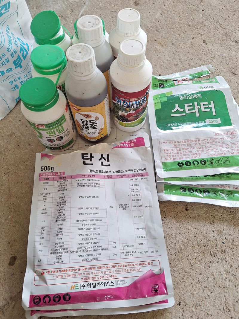 황약.오복이ss기로500l 3통단감과수원에살포함.