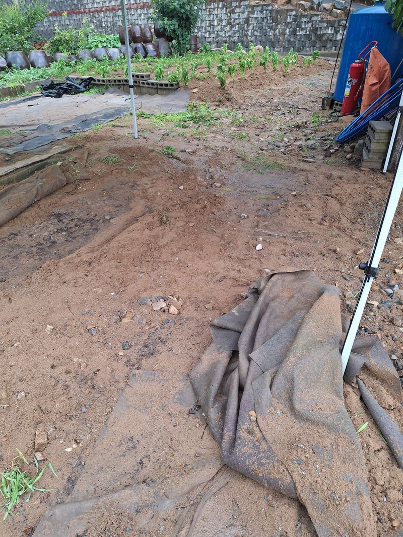 단감나무에 열심히 물을 주고 있는데 빗방울이 떨어지네요. 고마운 단비입니다.산딸기 묘목 15주 옮김.