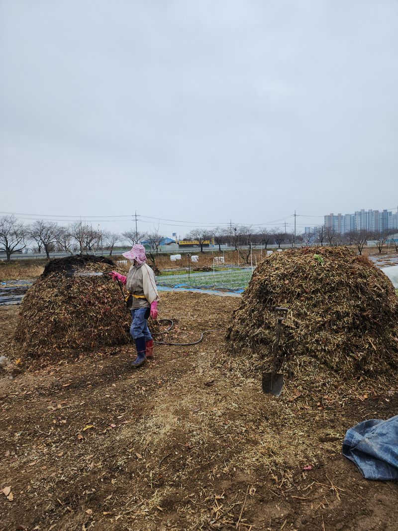 작물대파쇄후 퇴비만들기작업
