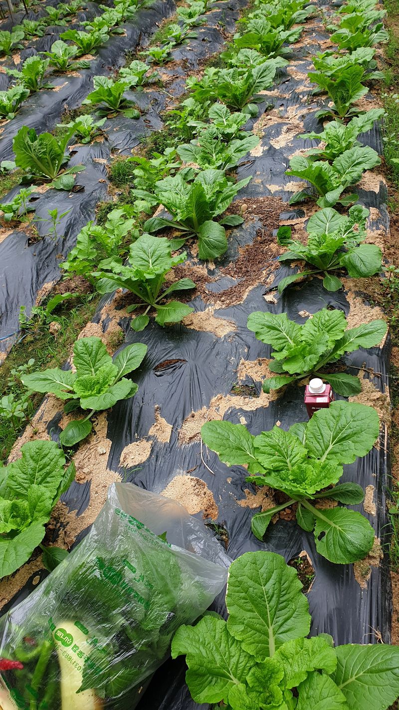 배추밭이 습해서 배수작업을 했다. 배추벌레 살충제도 뿌리고, 달팽이 약제도 몇알씩 놓았다.
