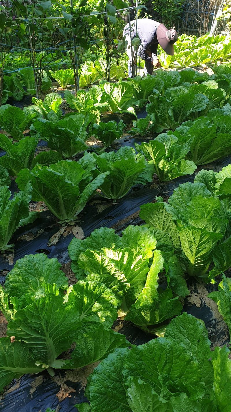 김장 배추밭 김매기하고 살충제 뿌리고. 더워서 땀 흘리고.