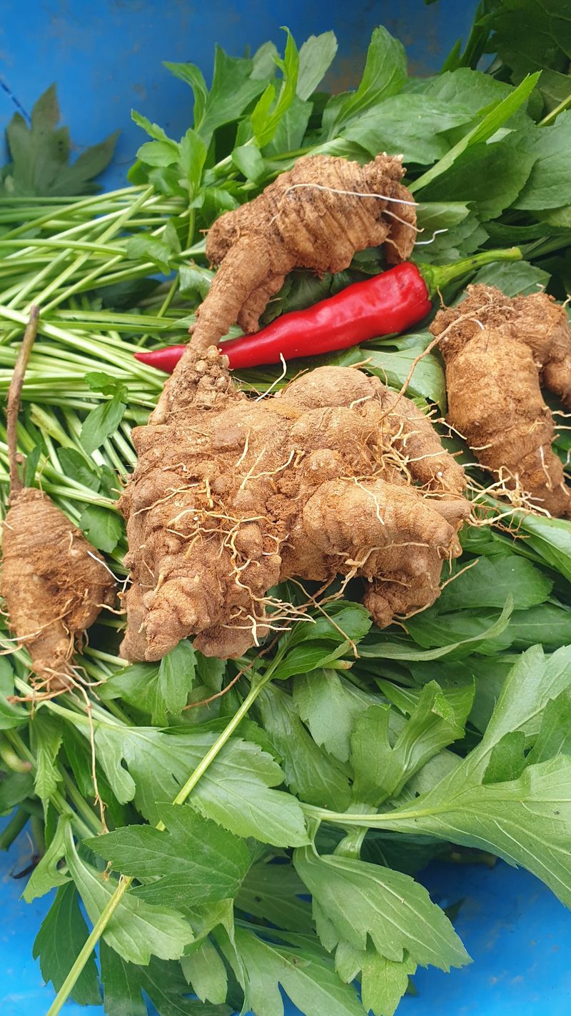복합비료 웃거름주기. 밭주변에 심은 묵은더덕을 뽑았다.