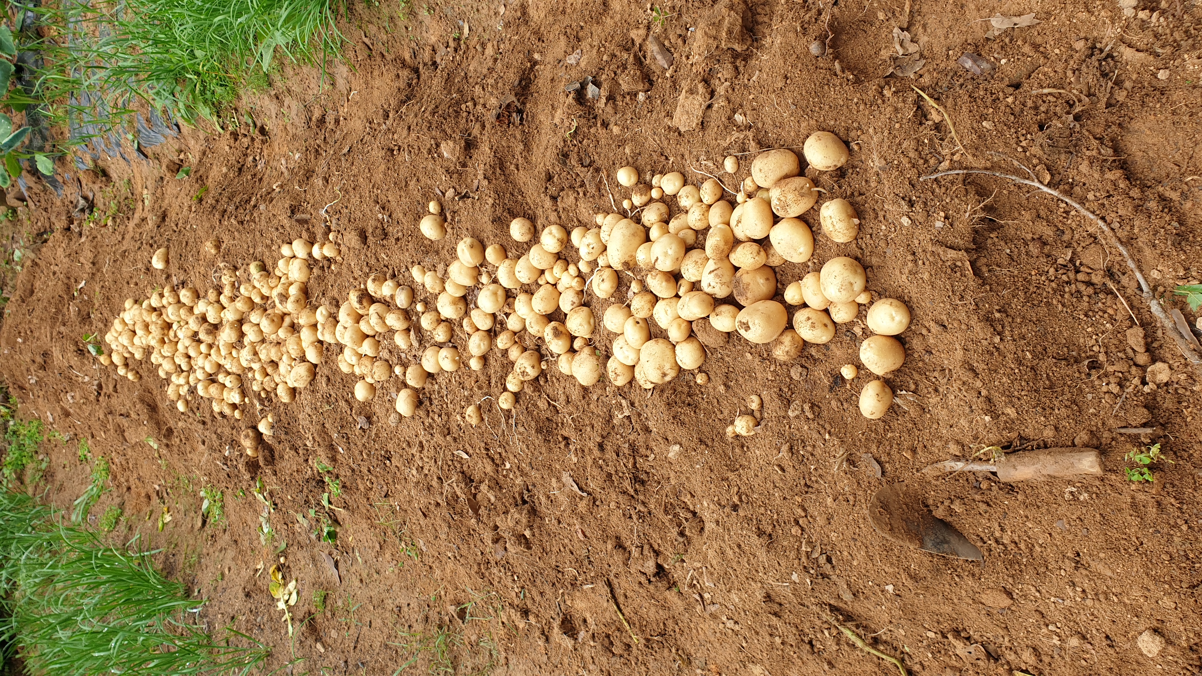 수미감자 수확했습니다. 크기는 탁구공만 하지만 맛은 좋아요.