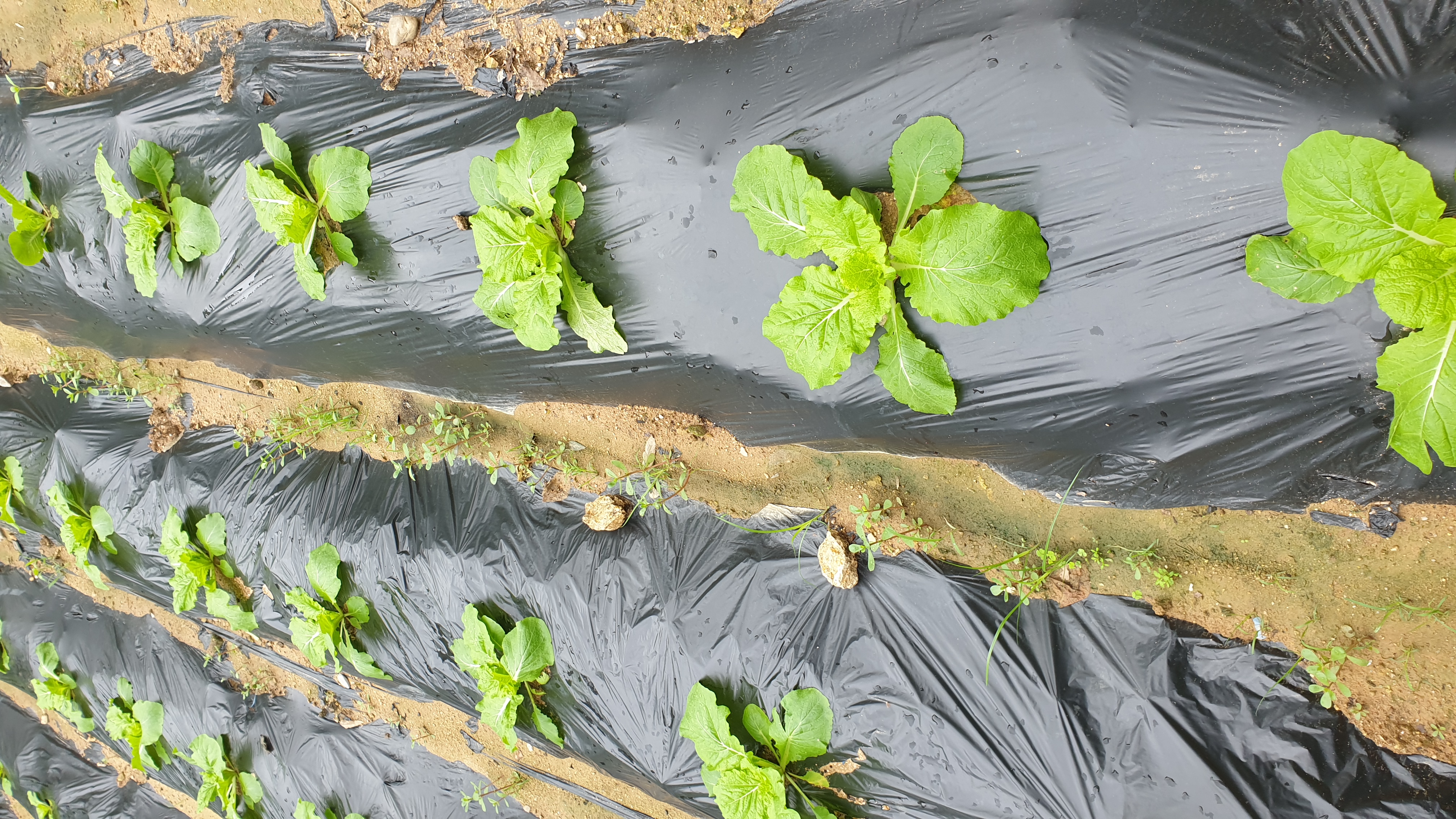 배추 심고 13일째 되는날, 벼룩벌레 약치고. 잡초제거.