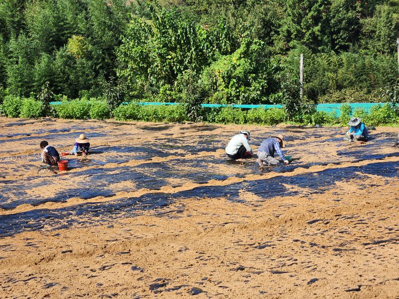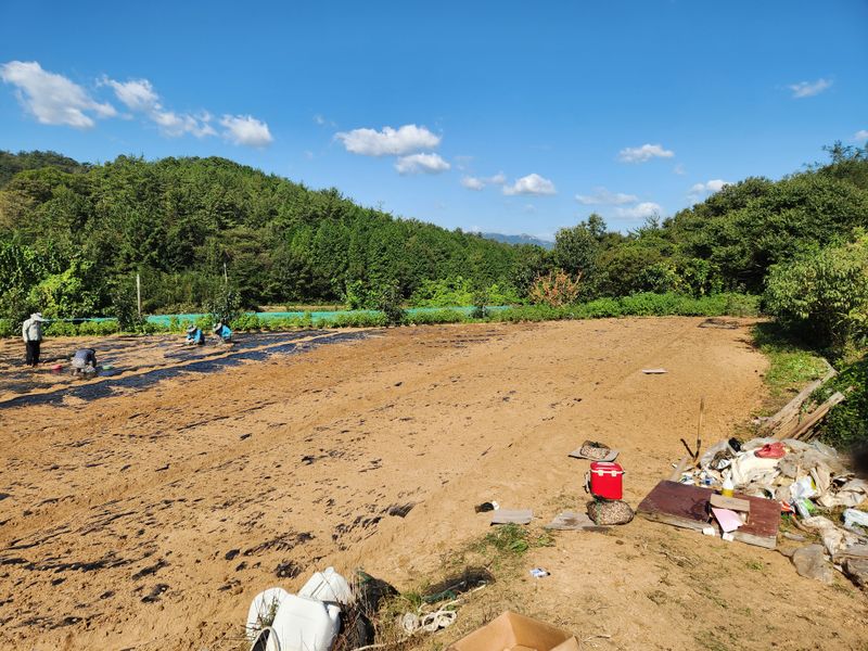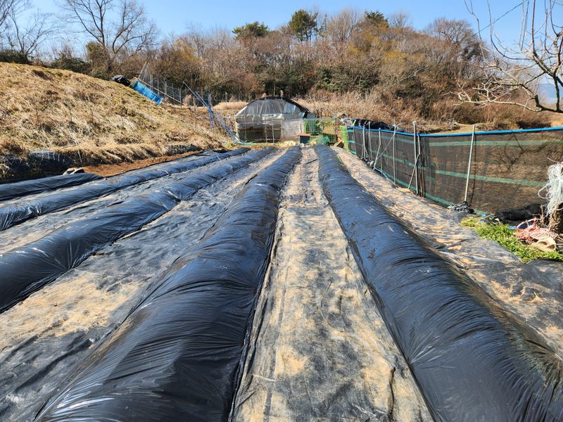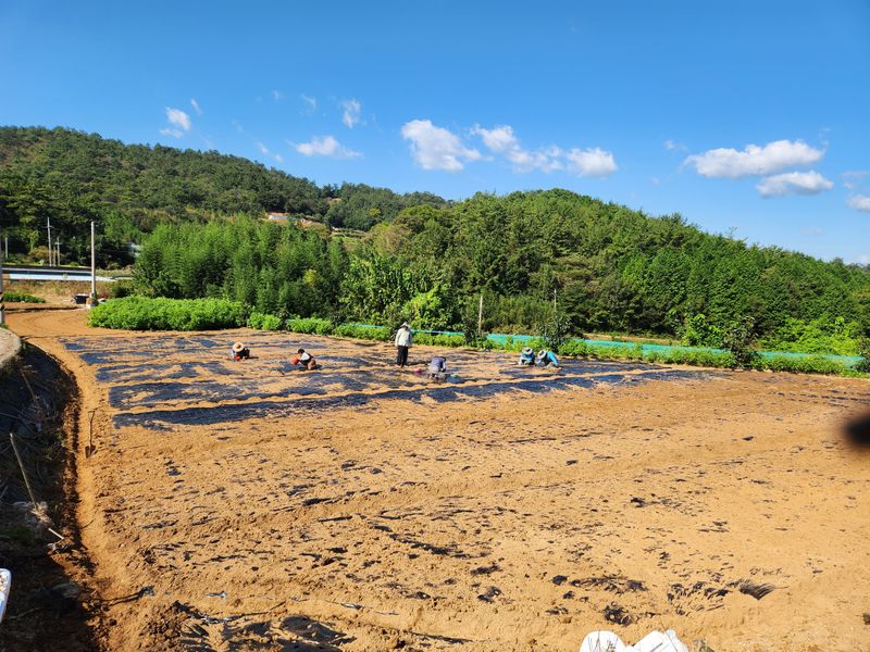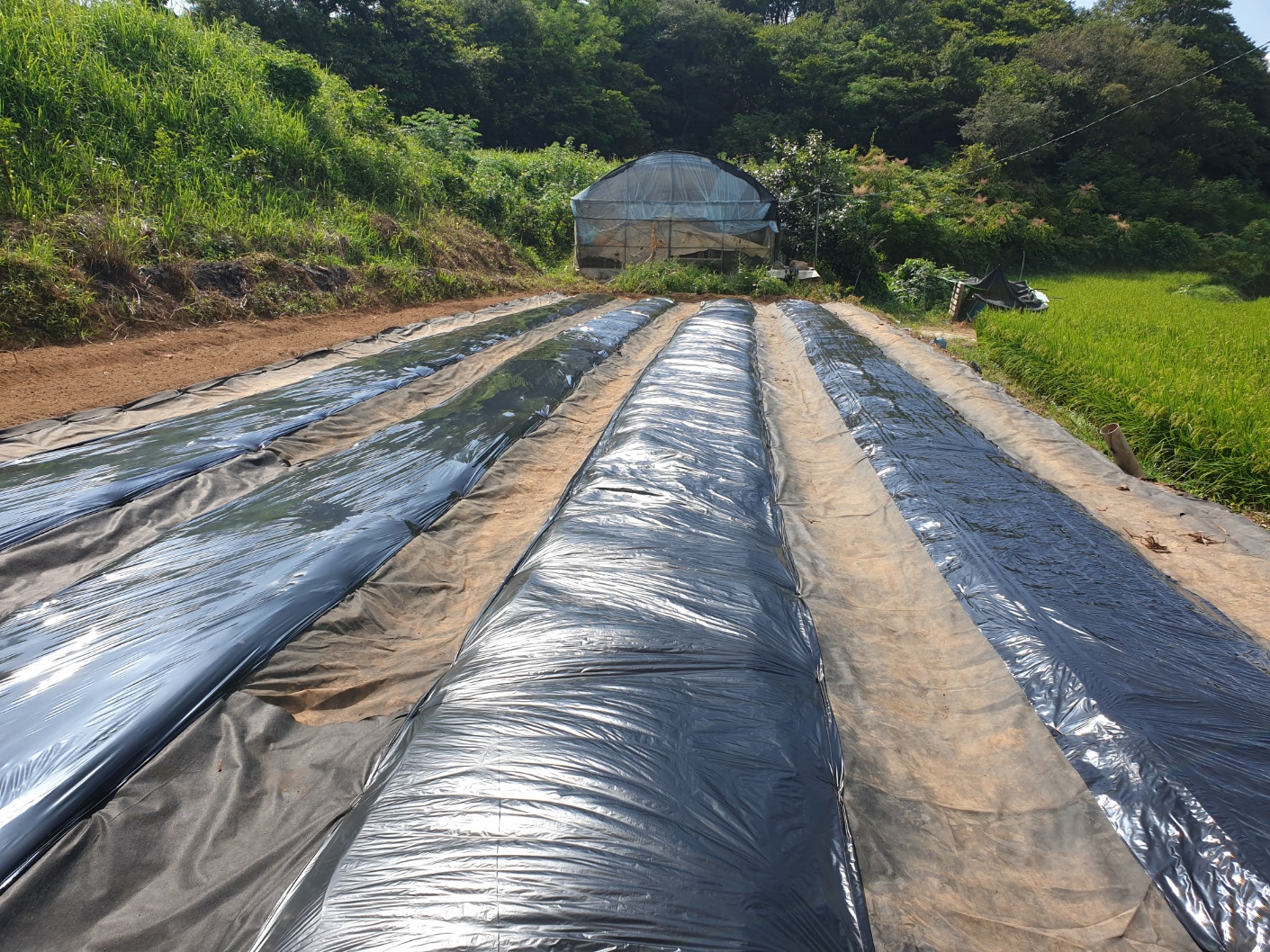 더위가 장난이 아닌데요 배추비닐피복 조금늦게 하면 비가 많이와서 우리는 이리했읍니다