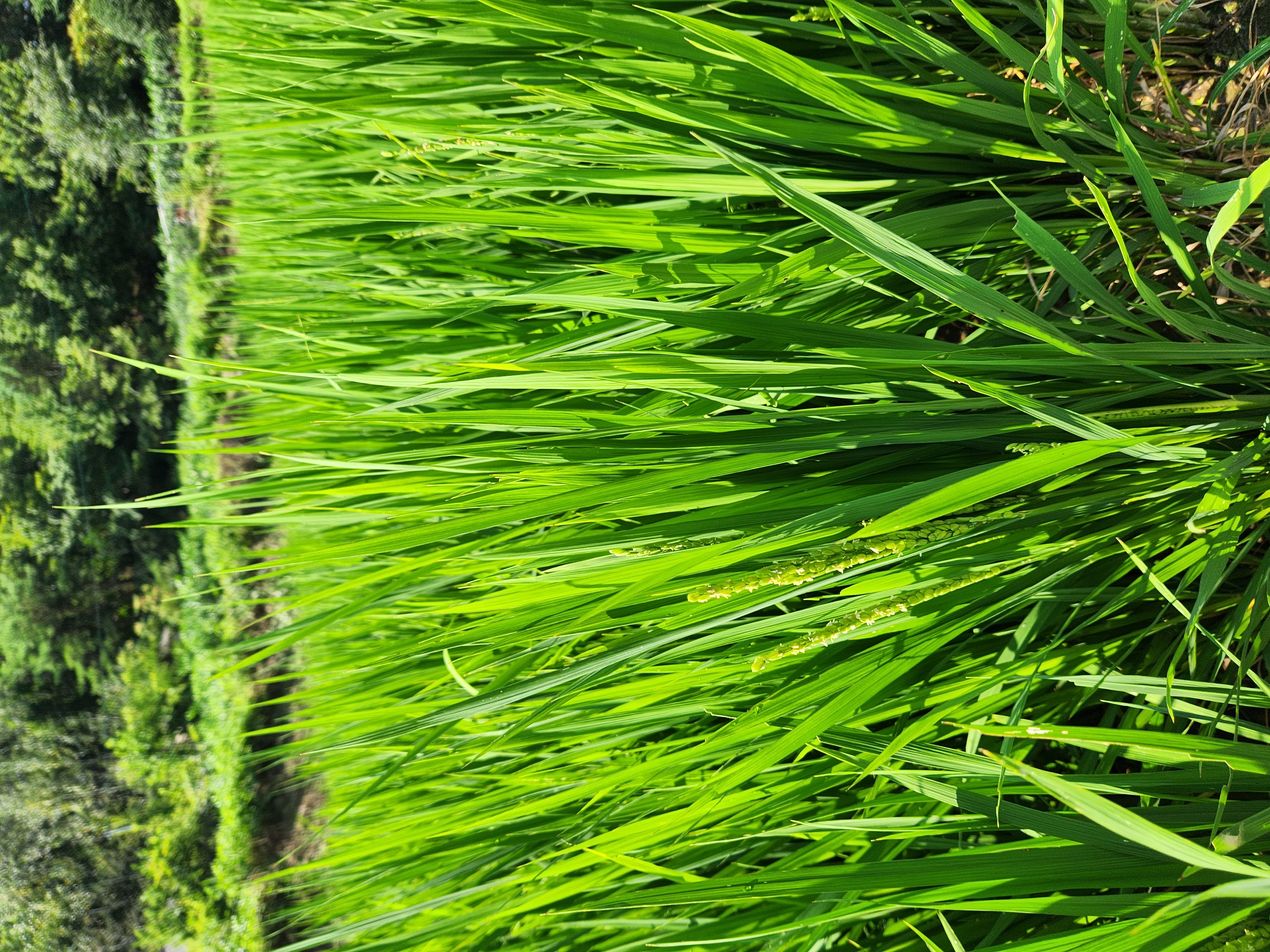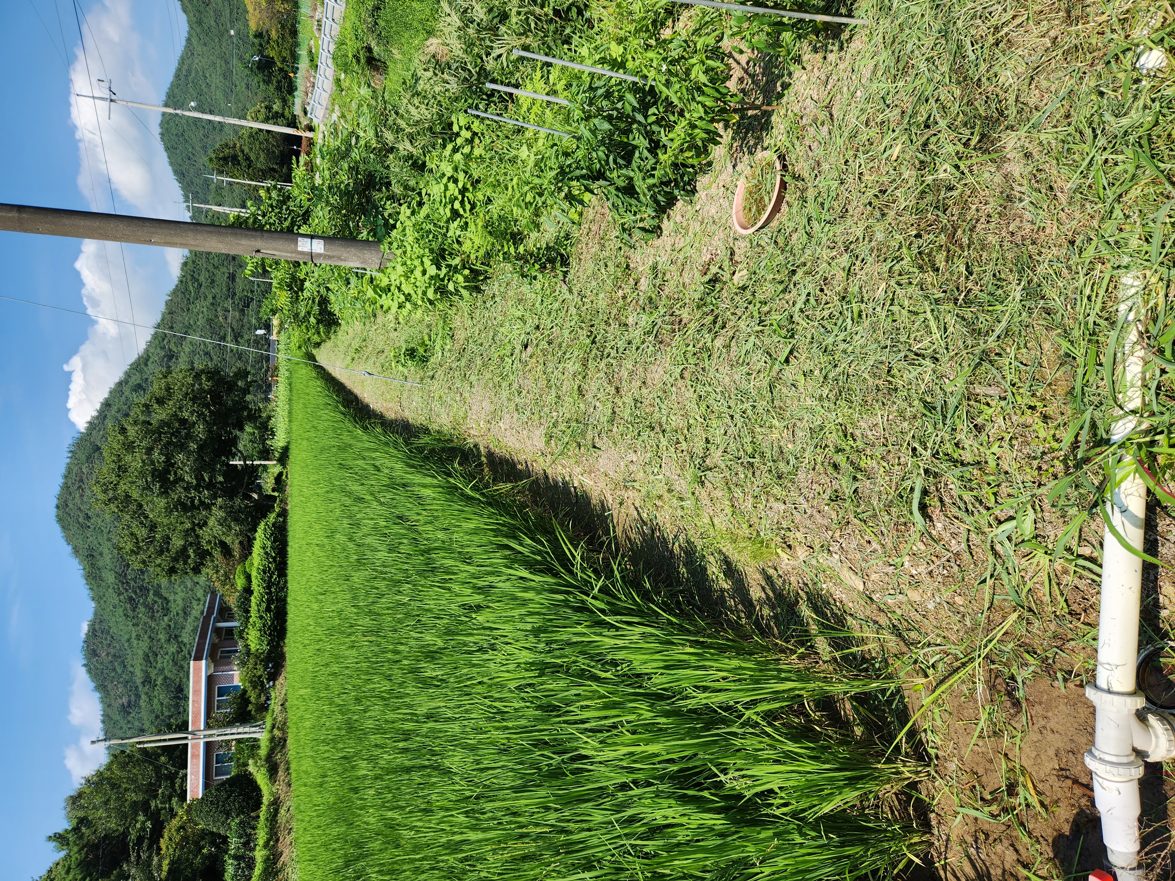 논두렁 제초 작업 벼 이삭이 하나 두개 피어나고있음